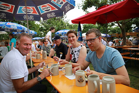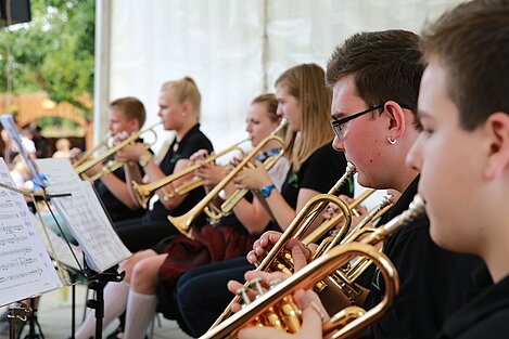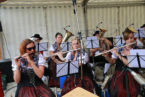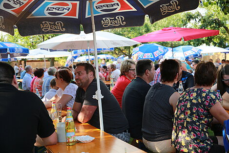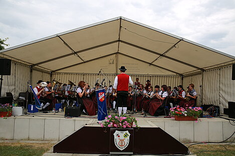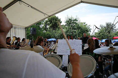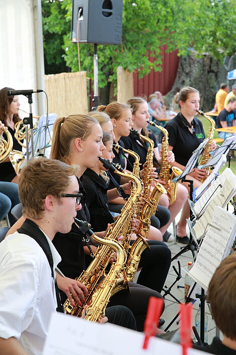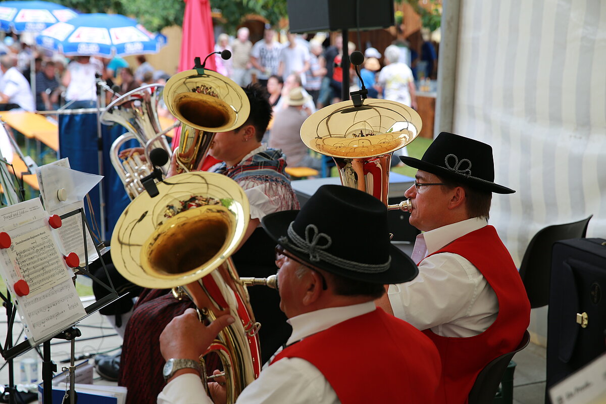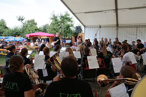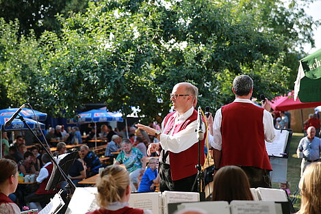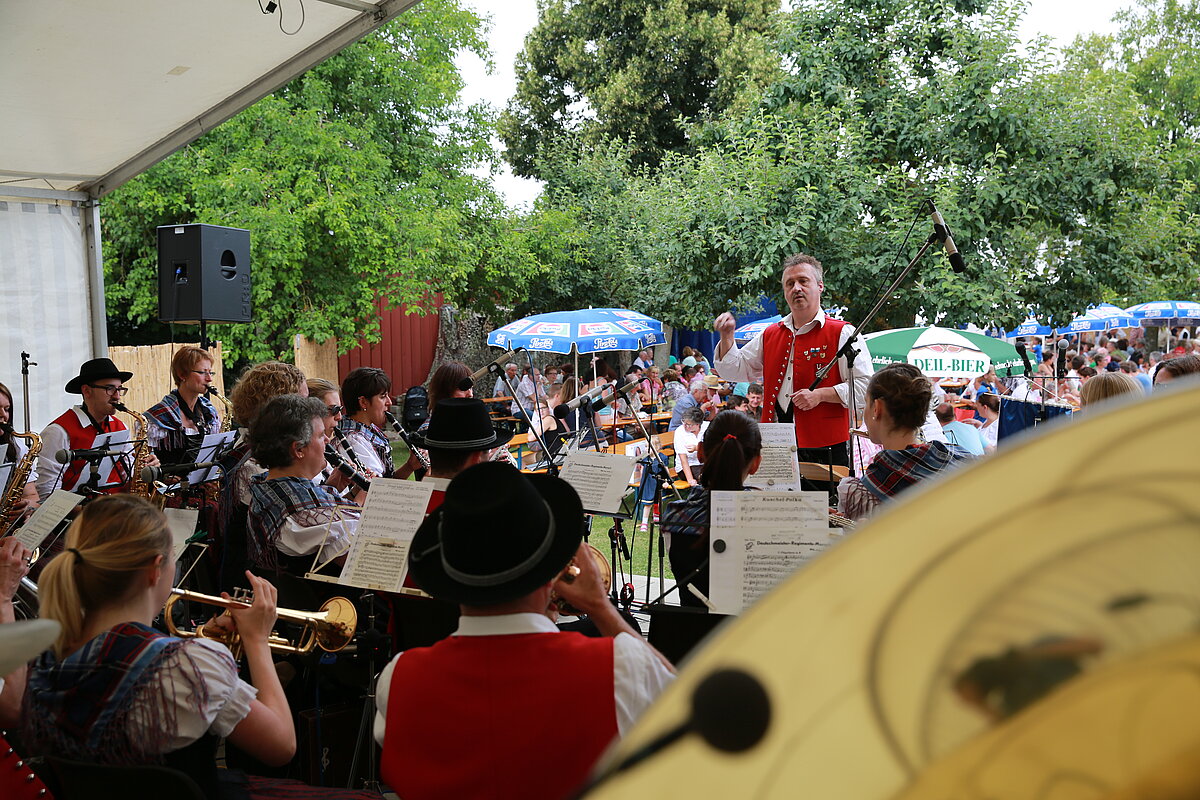 Mit einem Festgottesdienst, gestaltet von Pater Franz und musikalisch umrahmt von jungen Musikerinnen und Musikern von ElevensAGE, begann der Sonntag besinnlich. Beim anschließenden Frühschoppen mit Unterhaltungsmusik von der Harmonia Wullenstetten formte sich bald darauf lange Schlangen beim frisch zubereiteten Mittagstisch. Im Schatten der Obstbäume verbrachten auch die Kinder einen kurzweiligen Nachmittag beim Kinderschminken oder gemeinsamen Spiel. Unser Jungendorchester WITA unter der bewährten Leitung von Rani Rezek übernahm die Nachmittagsunterhaltung, bevor zum Festausklang der Musikverein Altenstadt mit viel Stimmungsmusik für einen schönen Festausklang sorgte.