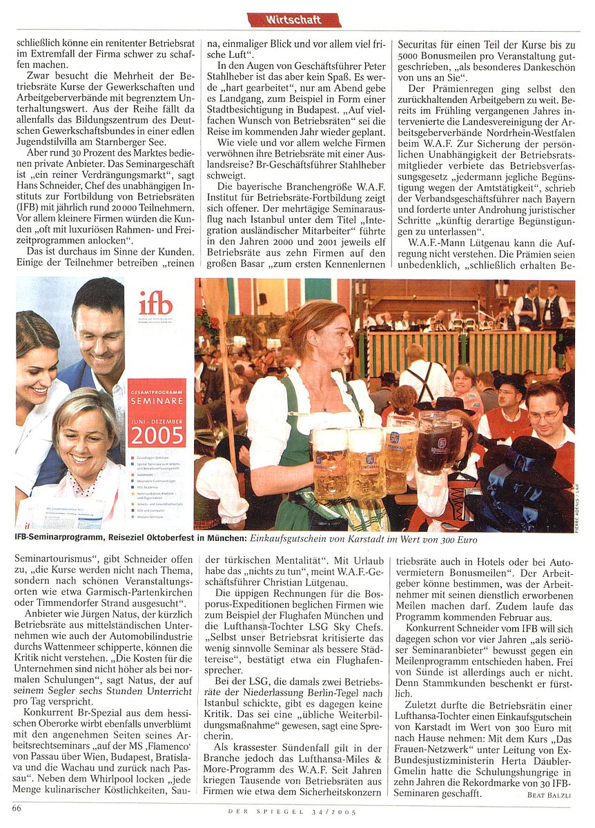 Anläßlich des Oktoberfestumzugs im Jahr 2004 fanden sich die Dorfmusikanten zur Stärkung und zum gemütlichen Beisammensein nach dem Umzug im Schützen-Festzelt ein. Bei dieser Gelegenheit wurde der Schnappschuß aufgenommen und im Zusammenhang mit Bonusprogrammen für Betriebsräte im Wirtschaftsteil des Spiegels, Ausgabe Nr. 34 vom 22.08.2005 auf Seite 66 abgebildet.