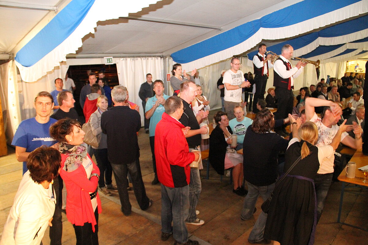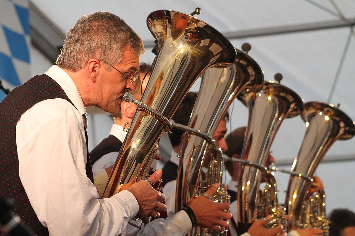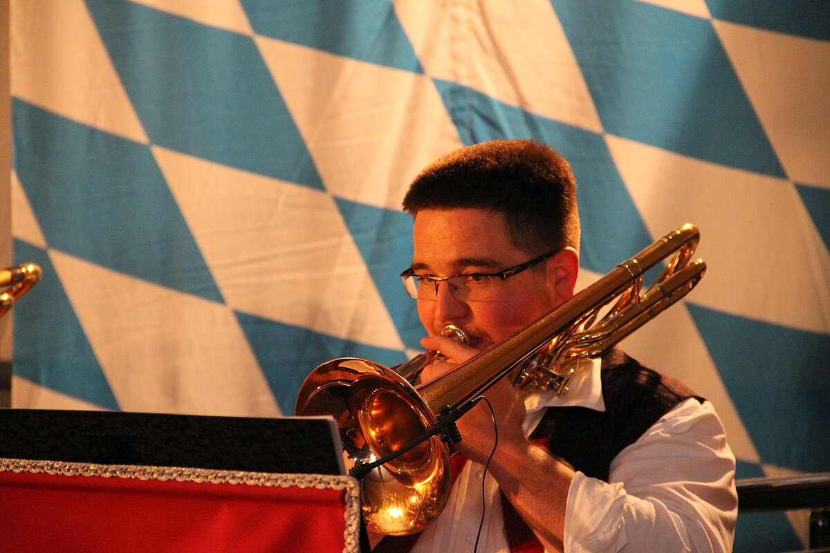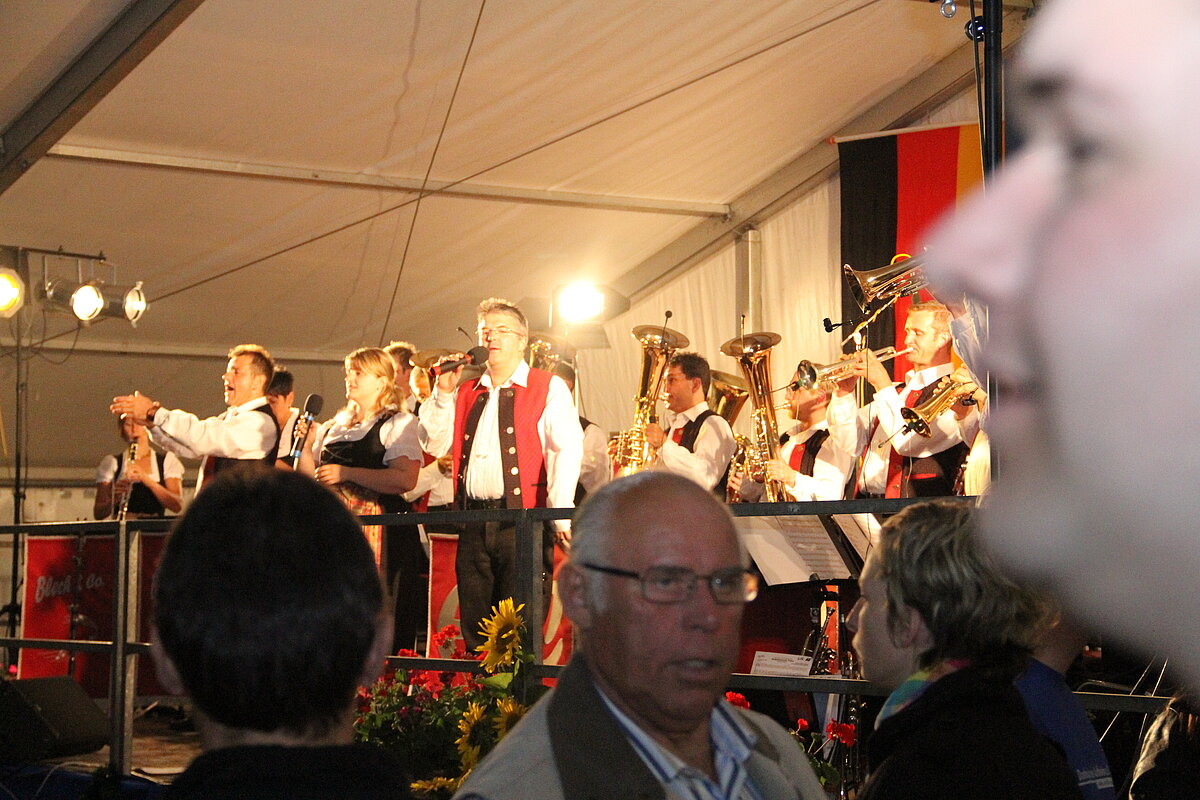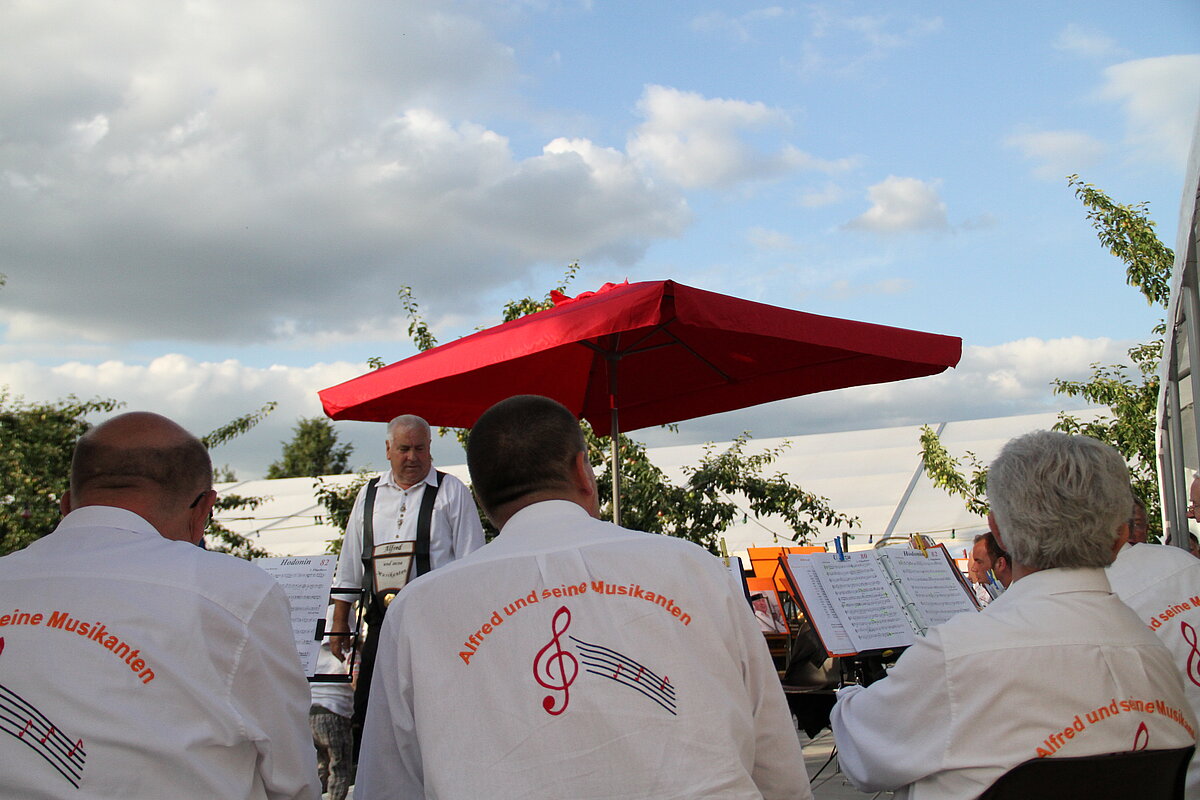 Zum Festbeginn am Freitag, 15. Juli ab 18 Uhr spielte "Alfred und seinen Musikanten" unter Leitung unseres Ehrendirigenten Alfred Taubenheim schwungvoll mit böhmisch-mährischer Blasmusik auf und schob die letzten Wolken beiseite. Dies lockte auch früh die ersten Besucher in den Musikergarten. Mit dem folgenden Blasmusikabend der Spitzenklasse kamen ab 20 Uhr die zahlreich erschienenen Fans und Freunde der Blasmusikformation Blech&Co. unter Leitung von Toni Müller voll und ganz auf ihre Kosten. Mit ihrem abwechslungsreichen Repertoire aus altbekannten Polka-Klassikern und modernen Kompositionen, aber auch Interpretationen aus Swing und Pop, oft begleitet von herrlichem Gesang, übertrug sich bei Spitzen-Sound die gute Stimmung bald auf das voll besetzte Festzelt. Sicherlich hat auch die gute Stimmung und Wiedersehensfreude mit den Kameraden vom extra angereisten, befreundeten Spielmannszug "In Treue Fest" aus Senden/Westfalen dazu beigetragen.