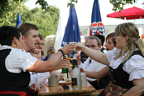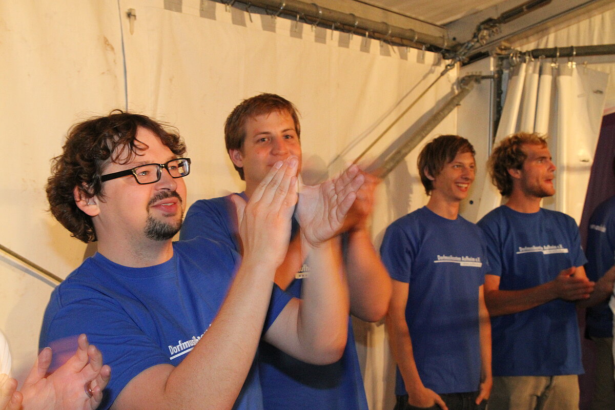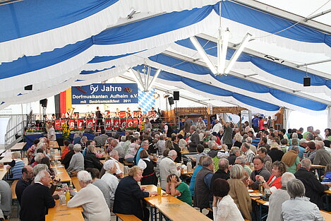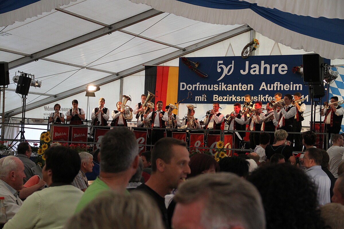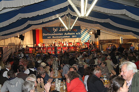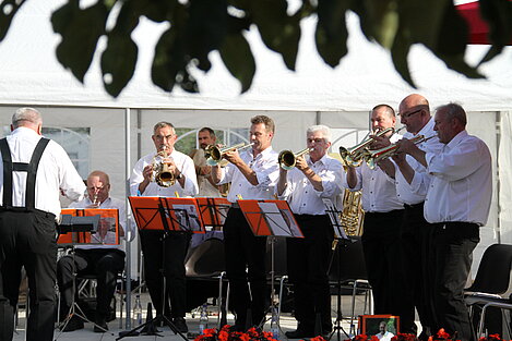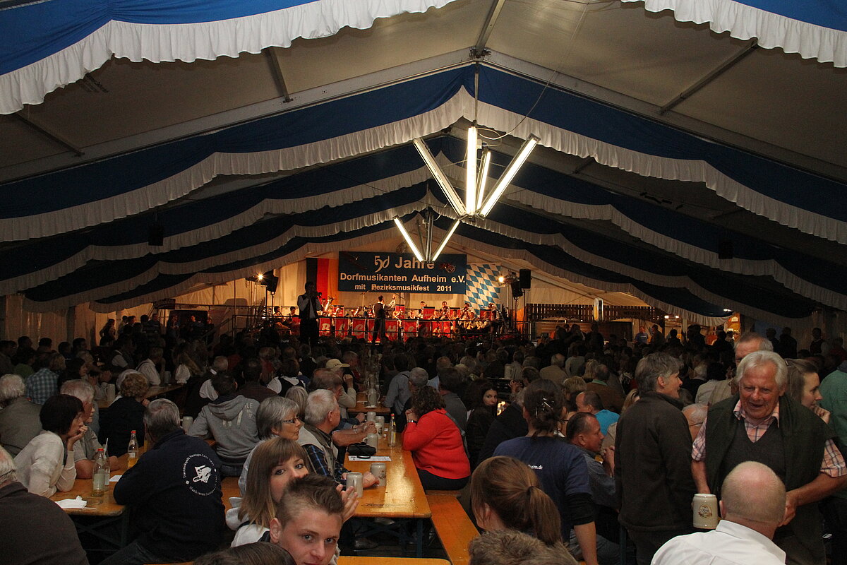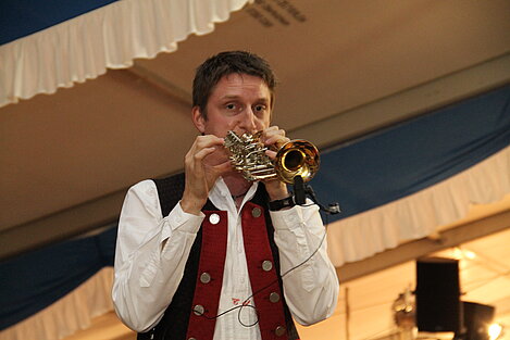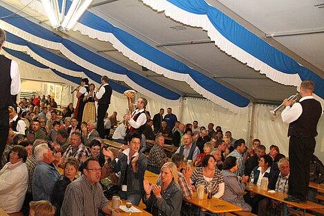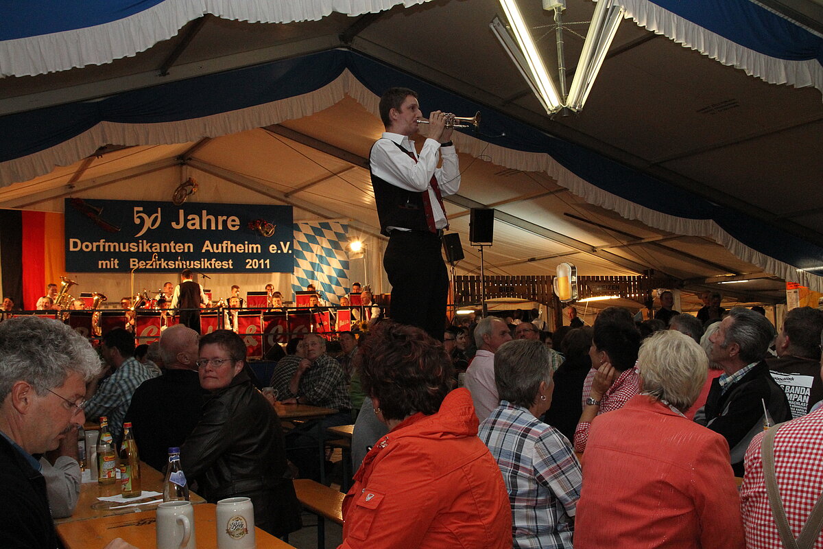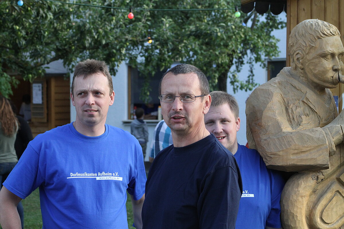 Zum Festbeginn am Freitag, 15. Juli ab 18 Uhr spielte "Alfred und seinen Musikanten" unter Leitung unseres Ehrendirigenten Alfred Taubenheim schwungvoll mit böhmisch-mährischer Blasmusik auf und schob die letzten Wolken beiseite. Dies lockte auch früh die ersten Besucher in den Musikergarten. Mit dem folgenden Blasmusikabend der Spitzenklasse kamen ab 20 Uhr die zahlreich erschienenen Fans und Freunde der Blasmusikformation Blech&Co. unter Leitung von Toni Müller voll und ganz auf ihre Kosten. Mit ihrem abwechslungsreichen Repertoire aus altbekannten Polka-Klassikern und modernen Kompositionen, aber auch Interpretationen aus Swing und Pop, oft begleitet von herrlichem Gesang, übertrug sich bei Spitzen-Sound die gute Stimmung bald auf das voll besetzte Festzelt. Sicherlich hat auch die gute Stimmung und Wiedersehensfreude mit den Kameraden vom extra angereisten, befreundeten Spielmannszug "In Treue Fest" aus Senden/Westfalen dazu beigetragen.