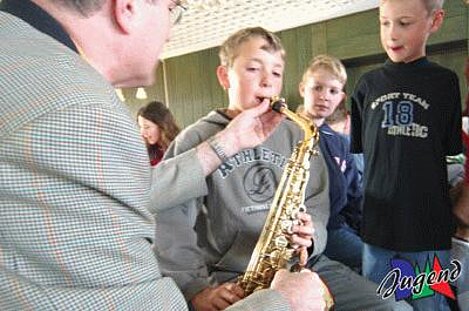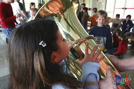 Einige Schüler konnten mit ihrem Wissen eines der begehrten DMA-Jugend T-Shirts gewinnen. In der Pause gab es dann noch leckere „Notenschlüssel“ zur Stärkung für alle. Wir hoffen alle Kinder hatten Spaß an diesem Vormittag und freuen uns auf die neuen Jungmusiker. Vielen Dank an die Lehrkräfte der Grundschule Aufheim und allen Musikern, die sich dafür Zeit genommen haben. Besonderer Dank auch unseren Jungmusikern Samantha und Fabian. Die beiden haben ihren Mitschülern einige Stücke vorgespielt und ihre Instrumente professionell vorgestellt. Hat ihr Kind auch Interesse, ein Instrument zu erlernen? Dann setzen sie sich mit uns in Verbindung.