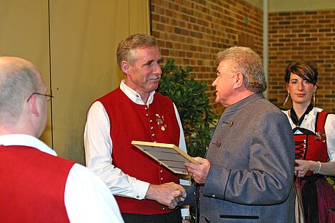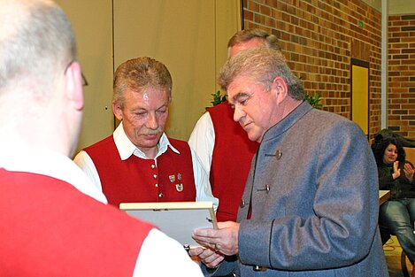 Die Ehrung von Bruno Eggle und Anton Menth für 40 Jahre aktives Musizieren im Allgäu-Schwäbischen-Musikbund für die Dorfmusikanten Aufheim e.V. war sicherlich der Höhepunkt. In seinen Dankesworten zählte Gerhard Snehotta eine ganze Reihe Verdienste der Beiden für den Verein auf. Er wies auf ihre Vorbildfunktion hin und wünschte noch viele aktive Jahre. Für 25 Jahre Mitgliedschaft im ASM wurde der 1. Vorsitzende Thomas Mohring geehrt. 15 Jahre Mitglied im ASM sind Nicole Braun, Christian Kuschel, Regina Menth, Roswitha Ott, Anna Trunk. Für 10 Jahre bekamen Beate Heide, Stefanie Junginger, Meike Plettenberg, Patrick Ziesel, Christoph Ibele eine Urkunde mit Anstecknadel.