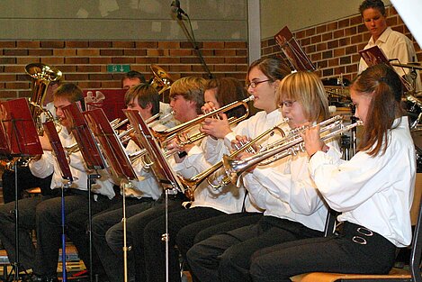 Mit der Fanfare 2000 begann die Anfängergruppe unter Leitung von Roswitha Ott den Konzertabend. Die rund 14 Jungen und Mädchen zeigten mit viel Begeisterung, welche Freude ihnen das gemeinsame Musizieren im Orchester bereitet. Im zweiten Teil spielte die Jungbläservereinigung Aufheim-Gerlenhofen-Illerzell unter Leitung von Bernd Mohring. Der beeindruckende Klangkörper, bestehend aus knapp 60 Jugendlichen, meisterte die anspruchsvollen Kompositionen wie die "Mazurka Rhapsody" oder das Trompetensolo "Buglers Holiday" vorzüglich.