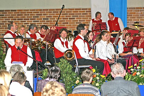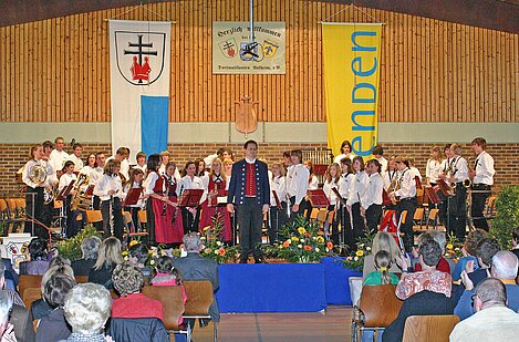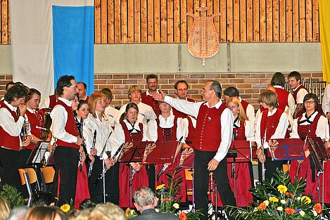 Die Dorfmusikanten Aufheim eröffneten den dritten Teil nach der Pause unter Leitung von Reinhold Görthofer mit den Musicalmelodien aus dem "Phantom der Oper". Aber auch die Hymne "The Saint and the City", die "Funiculi-Funicula Rhapsody" sowie die Melodien aus dem "König der Löwen" wurden vom Publikum begeisert mit Applaus bedacht.