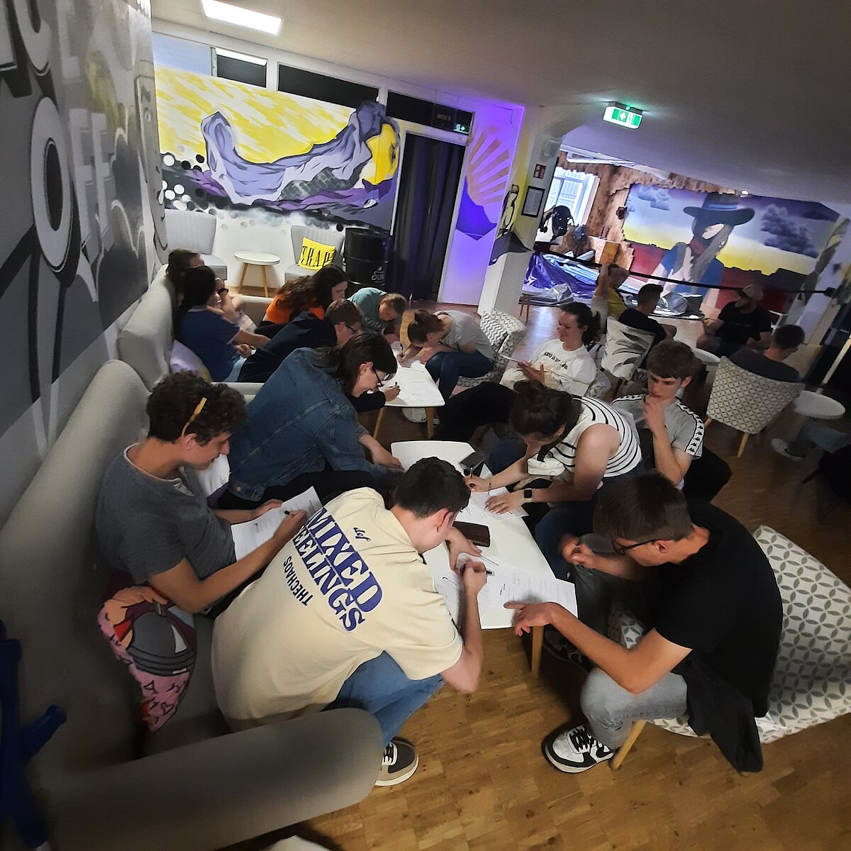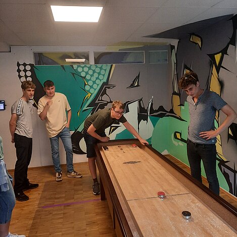 Das Face Off bietet spannende Teamspiele, die an das TV-Format "Schlag den Star" angelehnt sind. Unsere Jugendlichen wurden in vier Teams aufgeteilt und traten in verschiedenen Wettkämpfen gegeneinander an, darunter ein klassisches Quiz, Frisbeewerfen, Balancieren und Tischkicker.