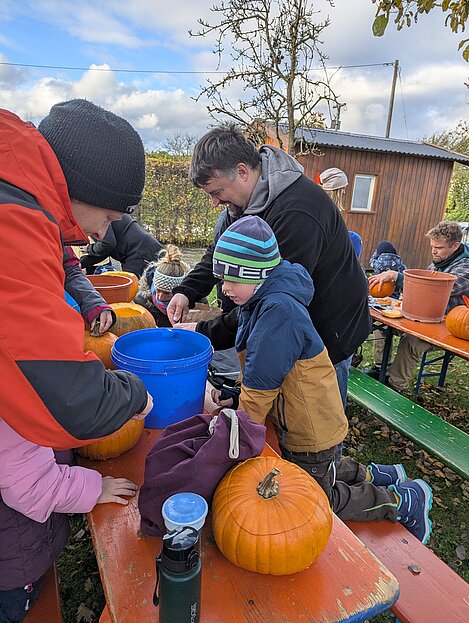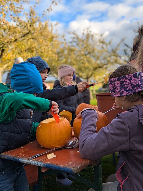 Am Sonntag, 26. Oktober 2025 fand im Musikergarten unser jährliches Kürbisschnitzen statt. Die Kinder hatten große Freude daran, gemeinsam mit den Erwachsenen kreative Figuren in die Kürbisse zu schnitzen. Es entstanden zahlreiche schöne und gruslige Gesichter – sogar Fledermäuse waren zu entdecken.