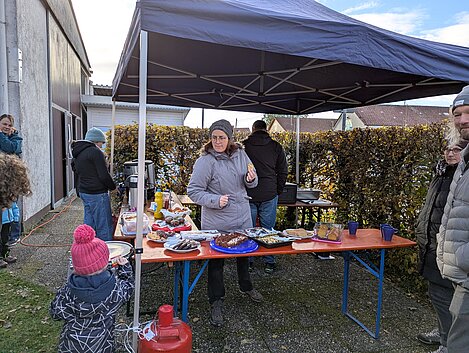 Neben dem kreativen Gestalten gab es wieder eine gemütliche Stärkung: Rote im Semmel, Kuchen, Lebkuchen, Kinderpunsch und Glühwein standen bereit und wurden von allen gern angenommen. Bei der angenehmen Atmosphäre entstanden viele schöne Gespräche und auch das Lachen kam nicht zu kurz.
