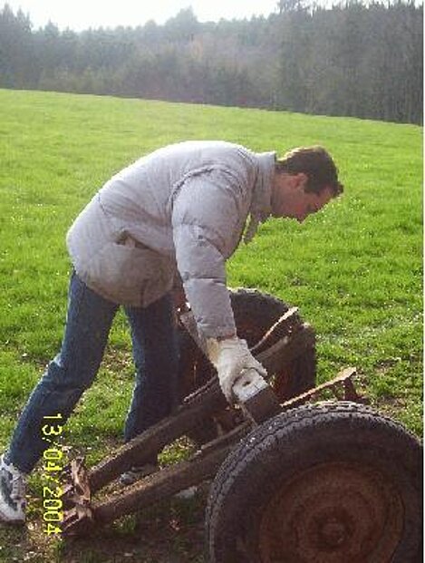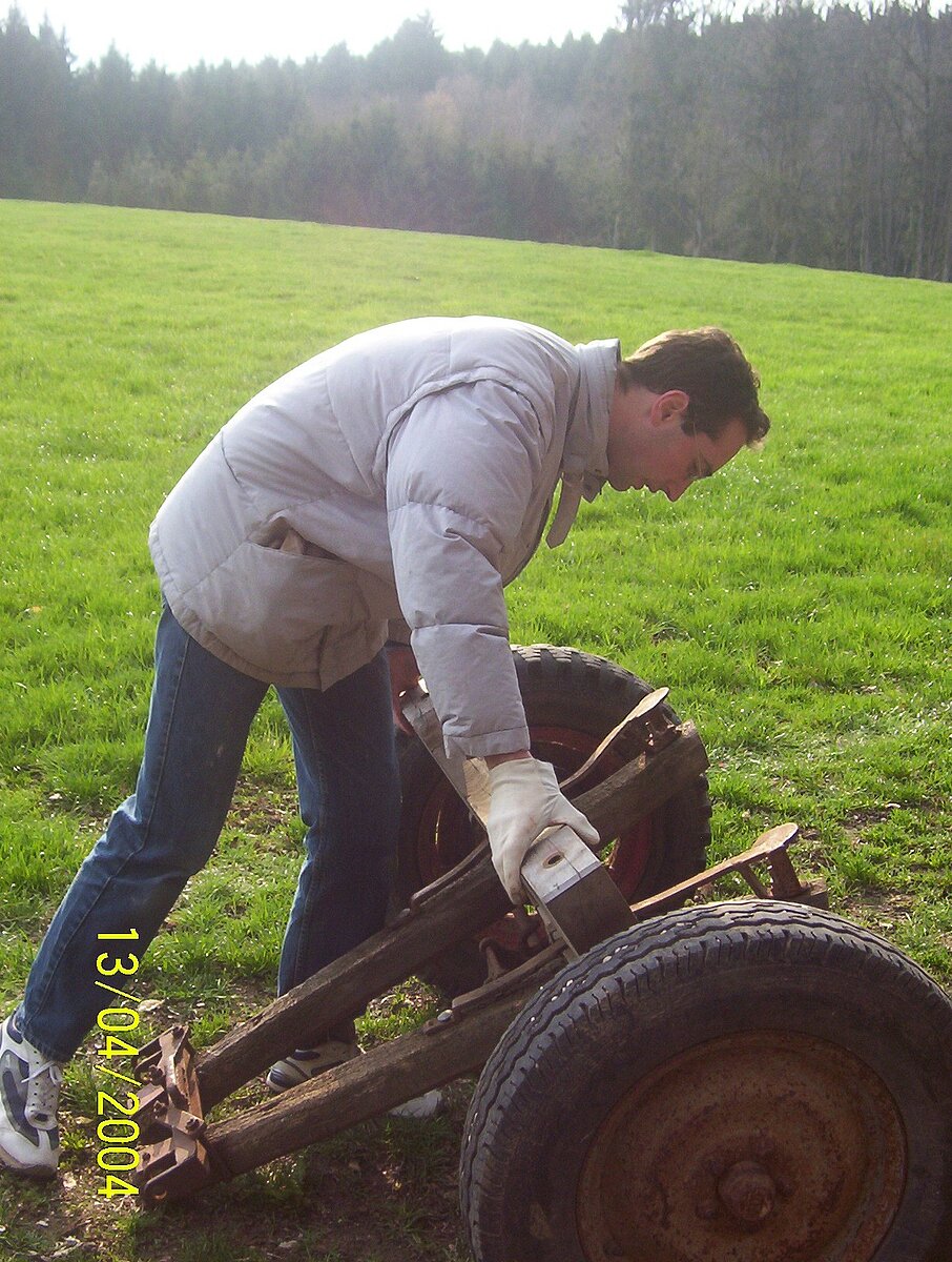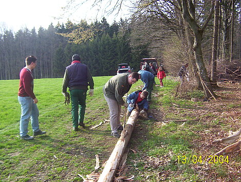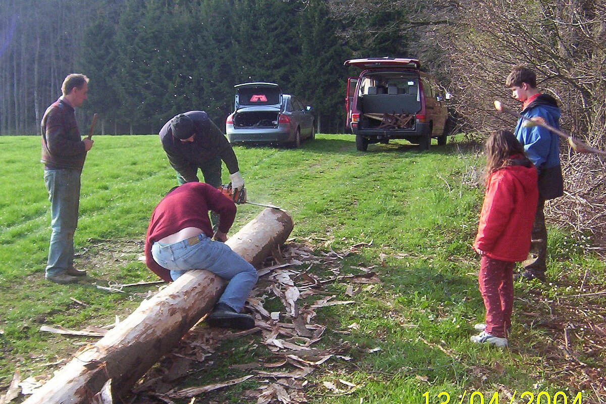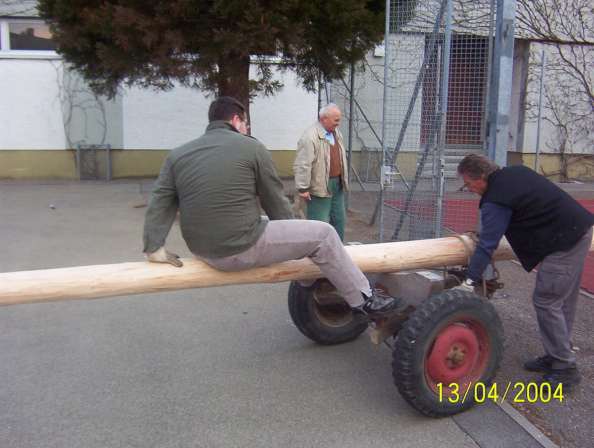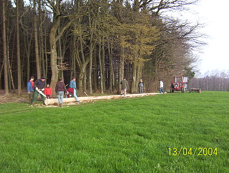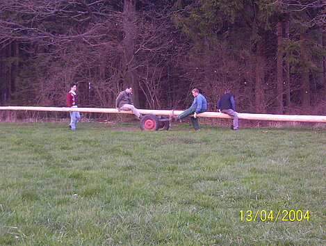 Am 13. April haben freiwillige Helfer den Maibaum gereppelt und anschließend ins Dorf gefahren.