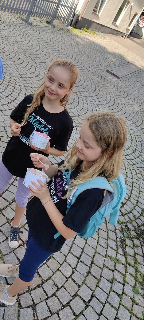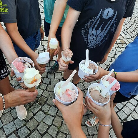 Pünktlich zum Probenbeginn traf sich die Anfängergruppe am 18.07.2023 im Aufheimer Proberaum, um die letzte Probe für dieses Schuljahr bei einem leckeren Eis zu beenden. Gemeinsam ging es für die Kinder und ihren Dirigenten zur Eisdiele. Dort gab es für alle ein leckeres Eis. Passend zu dem Stück „Penguin Promenade“, das die Kinder letzte Woche noch geprobt haben, gab es für die Jungmusiker Kinder-Pinguin-Eis und weitere leckere Sorten.