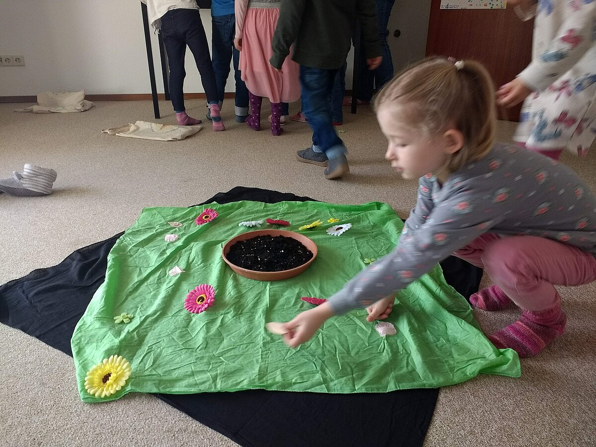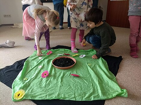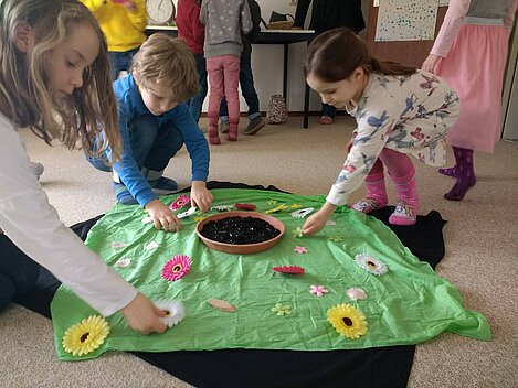 Nach dem wilden Treiben im Fasching begann der März nun mit ganz ruhigen Tönen zum Thema "Wachsen". Denn die Erde ist ganz still und wartet auf die Samenkörner, die nun zum Leben erwachen und wachsen wollen. Die Erde ist wunder-, wunderschön. Viele Blumen, viele Blüten kann man auf ihrem Kleide seh'n.
