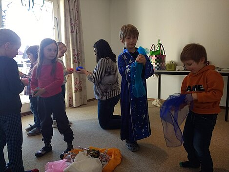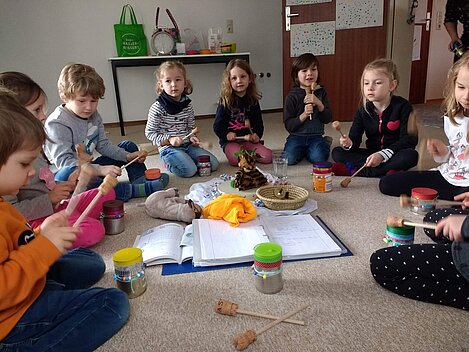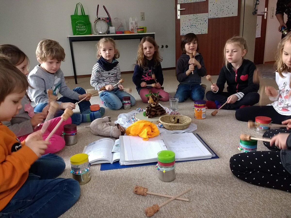 Der Februar stand ganz unter dem Motto "Trara Tschingbum trara". Ja, der Fasching war auch bei uns da. Mit lustigen Stopptanzspielen, Farbentanz, Raschelmusik oder auch Spiegelspiel kamen wir durch die närrische Zeit. Durch unsere selbst gebastelten Dosentrommeln kam auch so manch wilder Faschingsrhythmus zuhause an.
