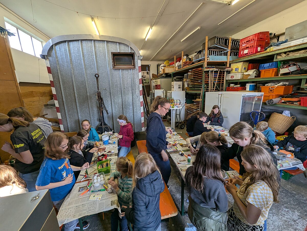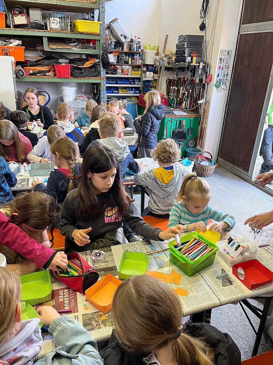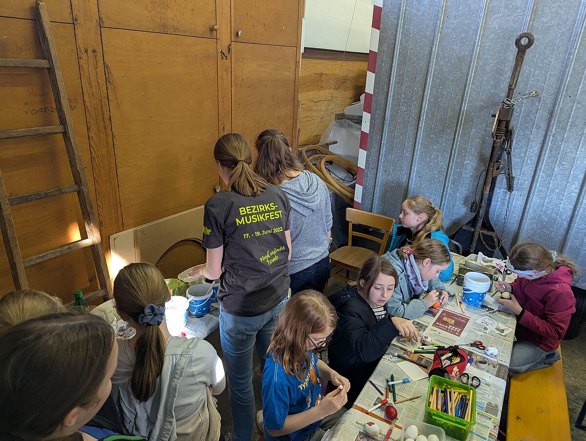 Mit bunten Farben, Pinseln und vielen verschiedenen Techniken wurden die Eier zu kleinen Kunstwerken verwandelt. Zusätzlich hatten die Teilnehmer die Gelegenheit, Osterkörbe zu basteln und Holzanhänger zu verzieren, was die kreative Vielfalt des Nachmittags noch weiter bereicherte. Die Atmosphäre war geprägt von Lachen und dem Austausch von Ideen. Es war schön zu sehen, wie die jungen Musiker viel Spaß miteinander hatten.