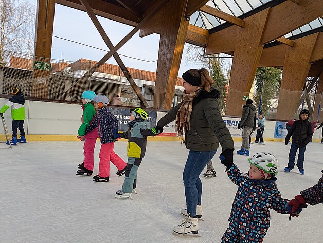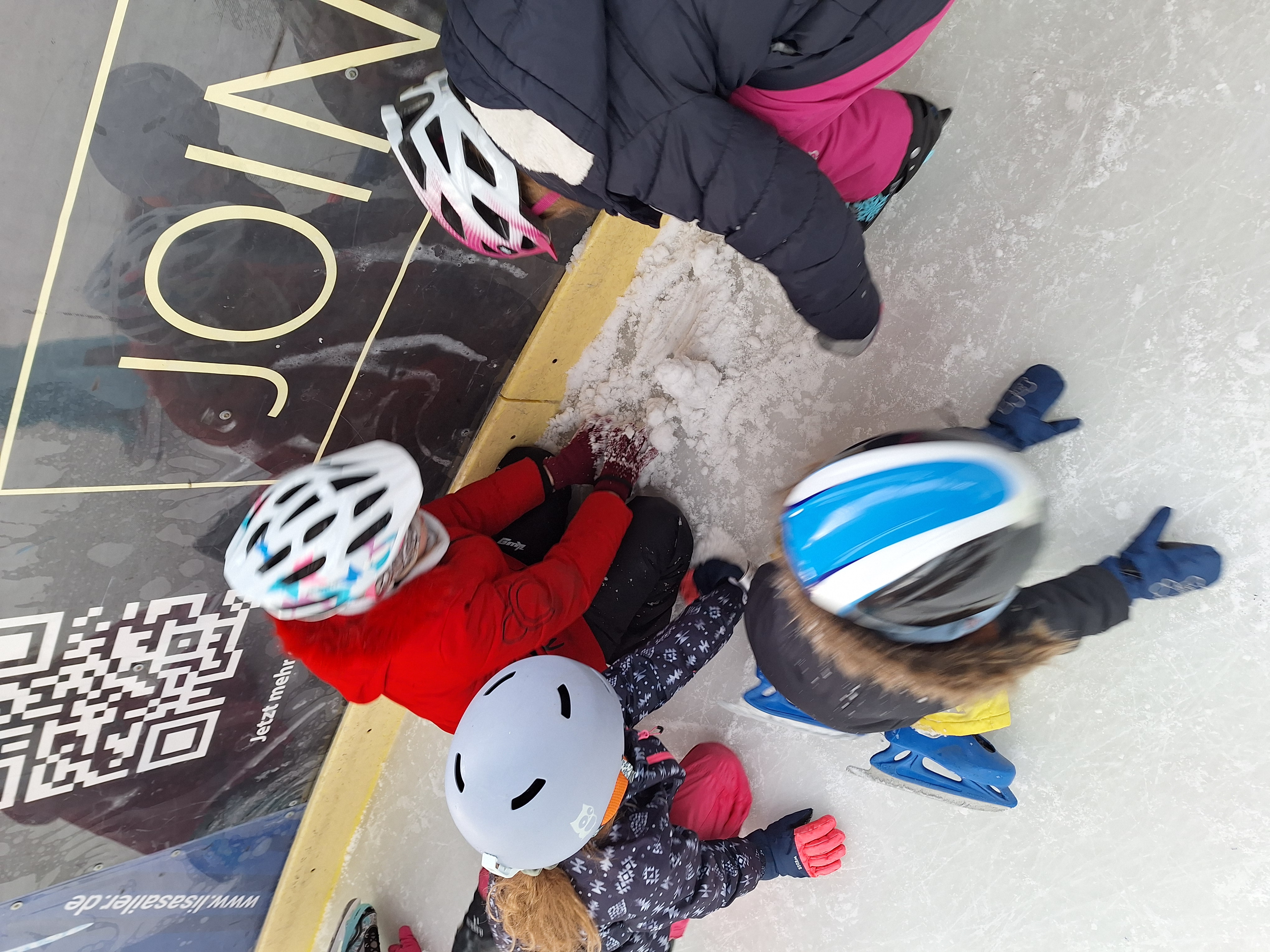 Anfangs brauchten manche noch etwas Zeit, um sich an das ungewohnte Gleiten zu gewöhnen, doch schon bald drehten alle mit viel Freude ihre Runden. Besonders spannend wurde es beim Spiel „Fango“, bei dem alle mit Begeisterung mitmachten und über das Eis jagten.