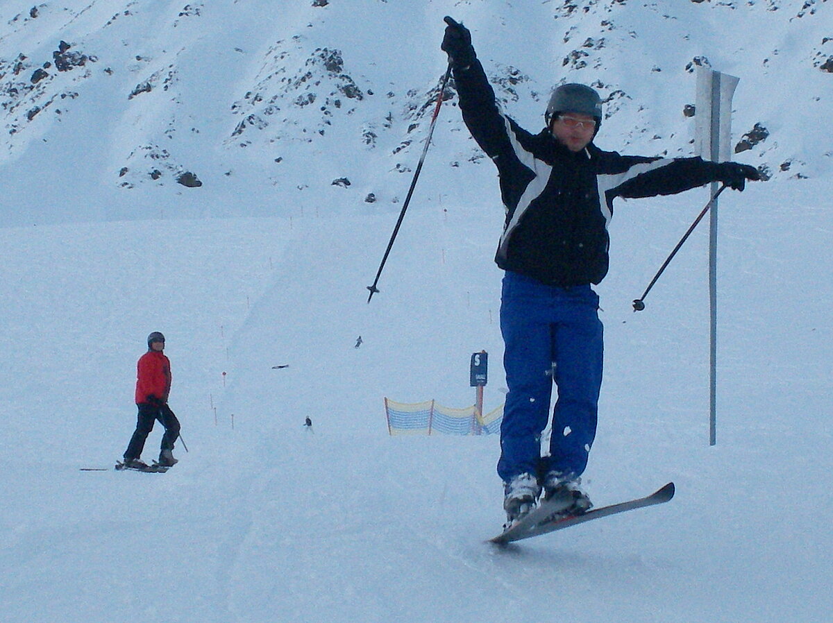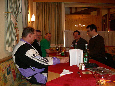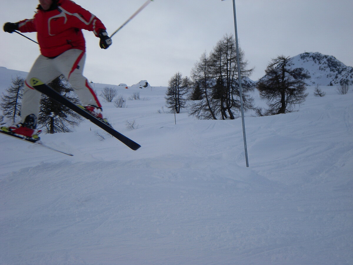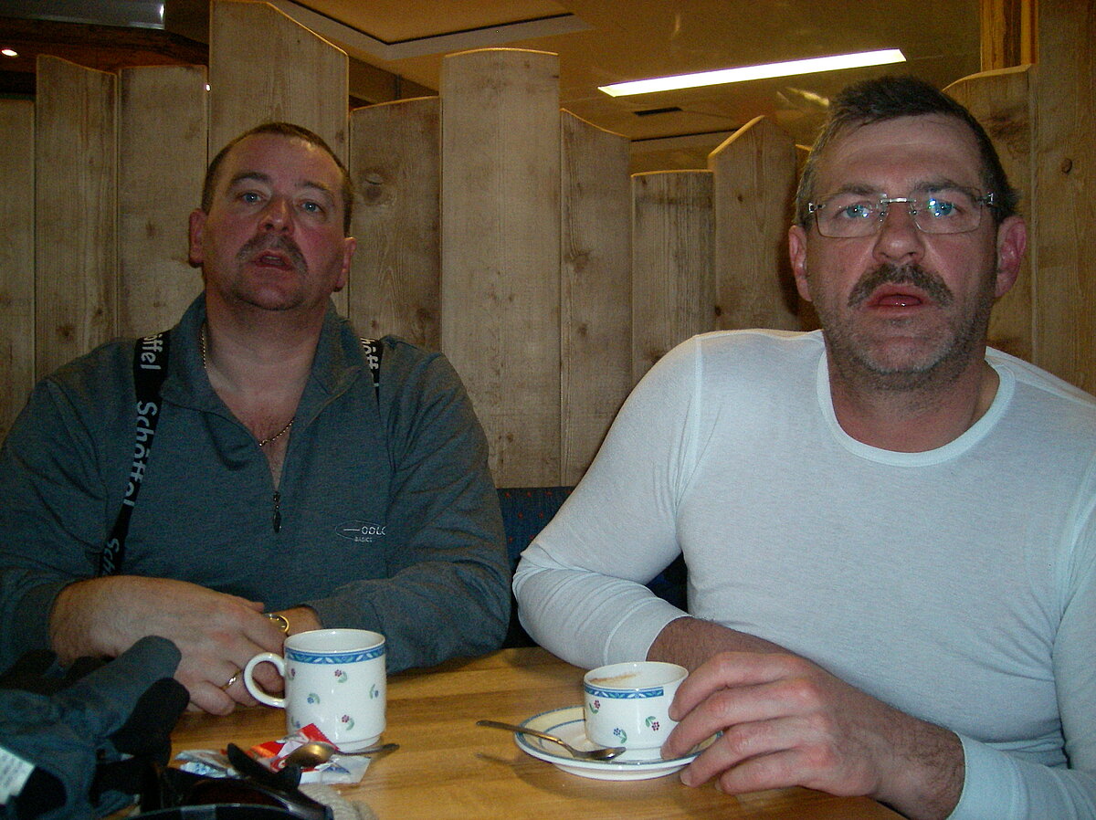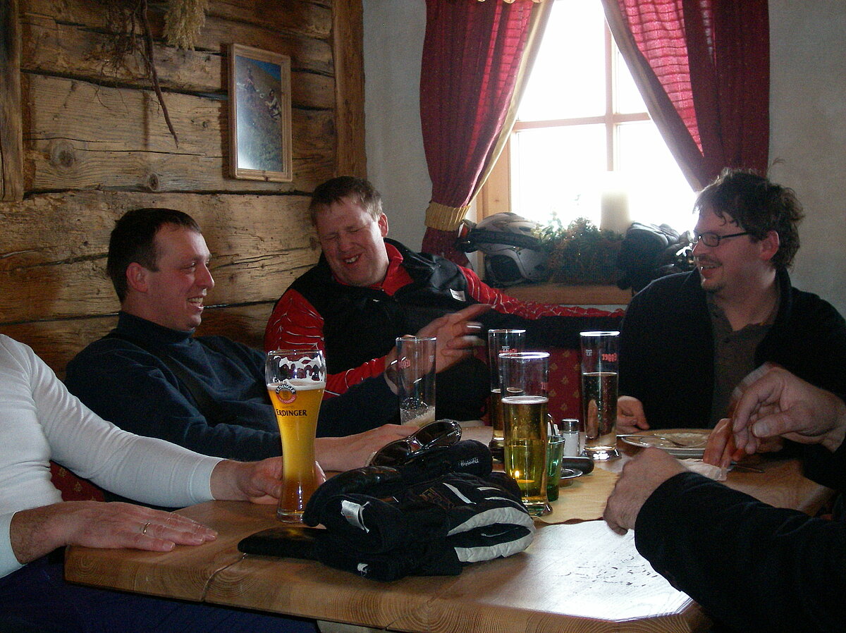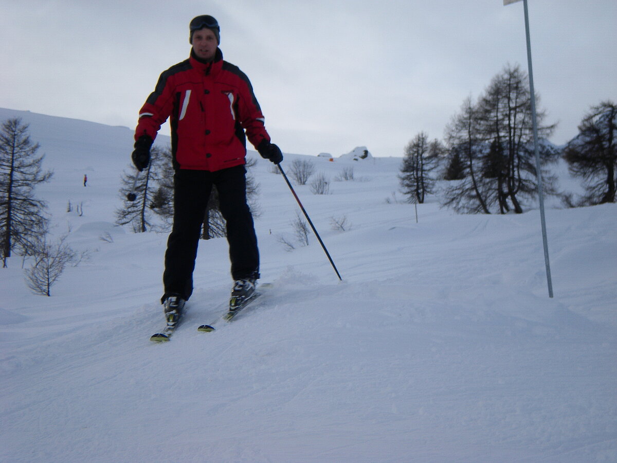 Stürmisch geht’s heut los. Und die Nordseiten der Hänge sind gesperrt. Einige hätten die Gondel bei soviel Bewegung eh nicht nehmen können. Zusammen mit Urlaubern aus ganz Europa drängen wir uns über die eingeengten Pisten. Gegen Nachmittag bekommen wir nochmals Zuwachs. Zwei Skifahrer und zwei Rodelfreunde – extra aus Aufheim nachgereist - schließen sich unserer Gruppe an. Wir sind erfreut. Abends gibt’s Live-Kino der besonderen Art. Welche anreisenden Gäste machen am schnellsten die Schneeketten an der Passstraße drauf?