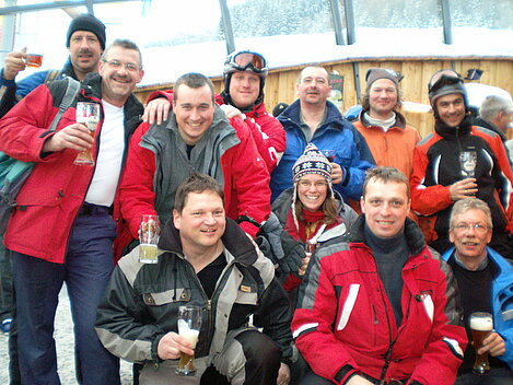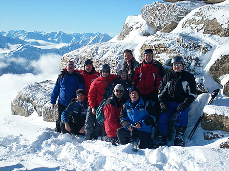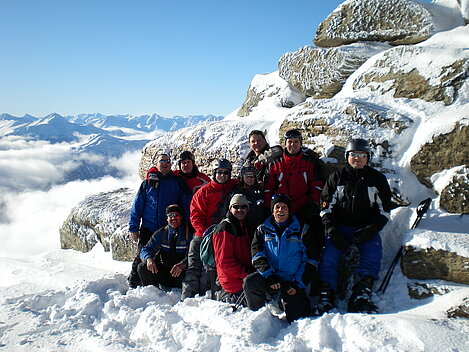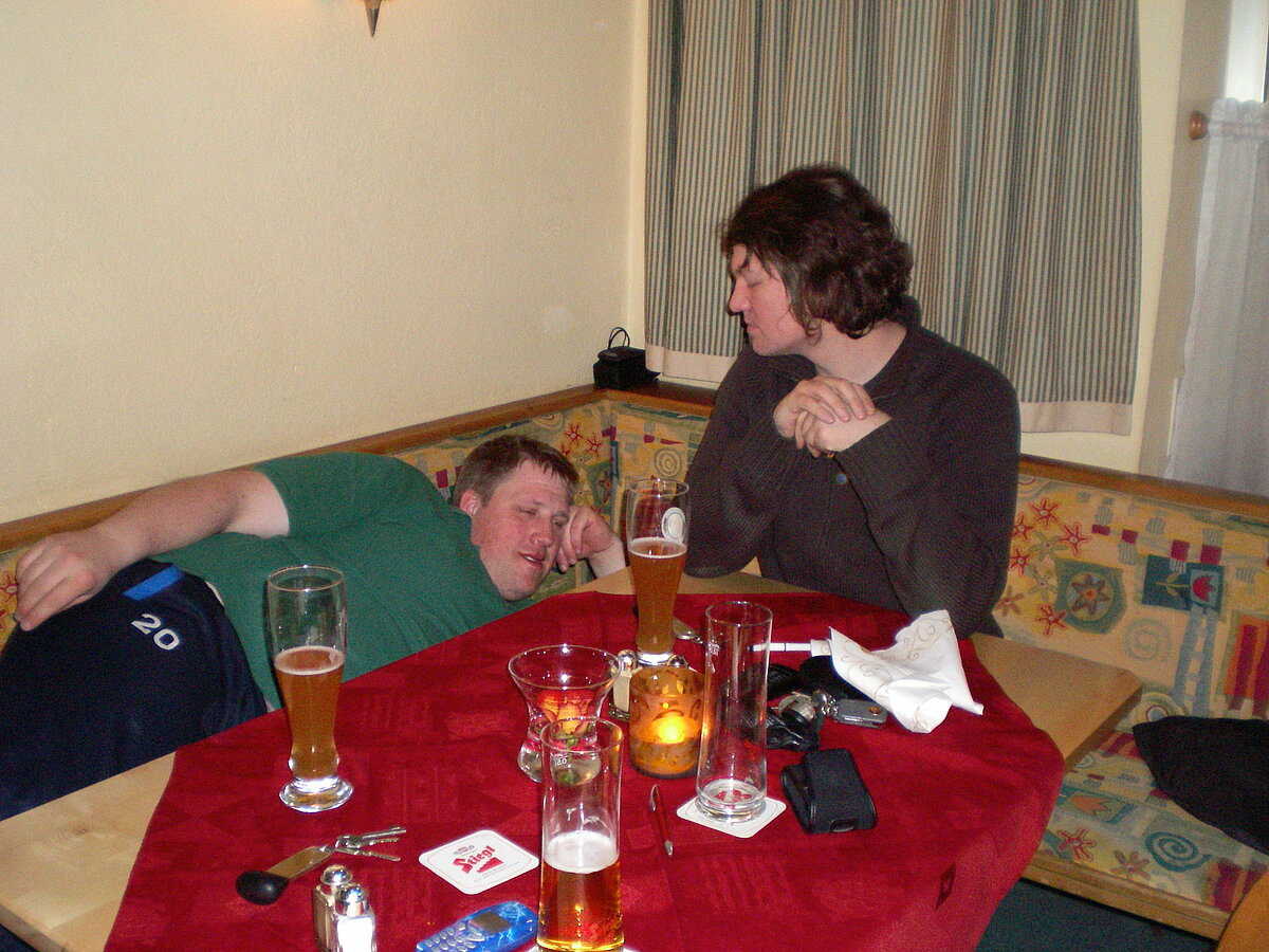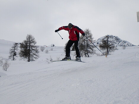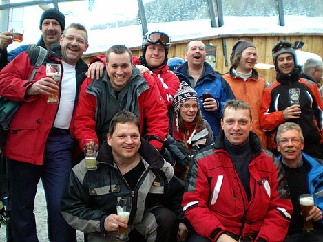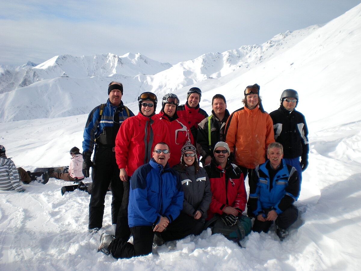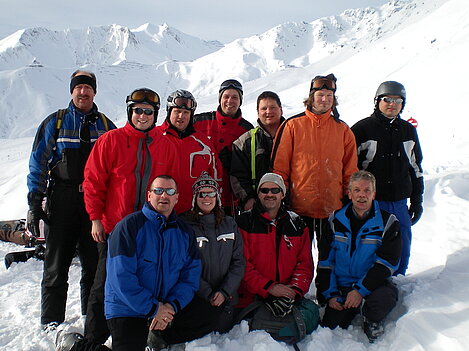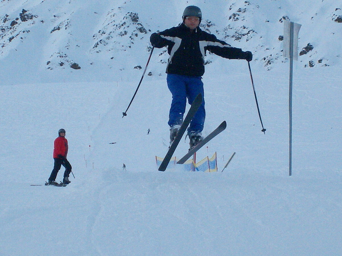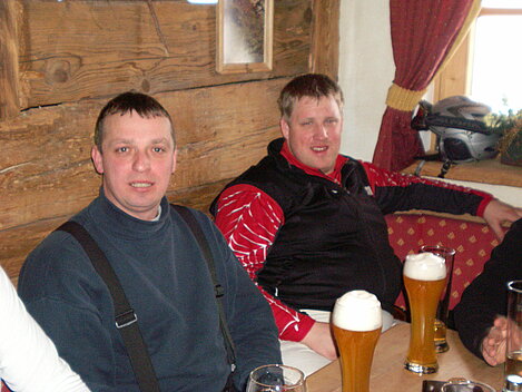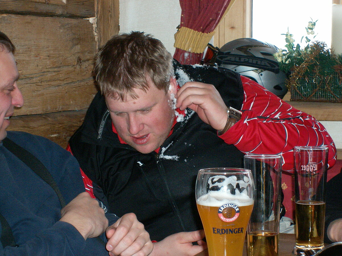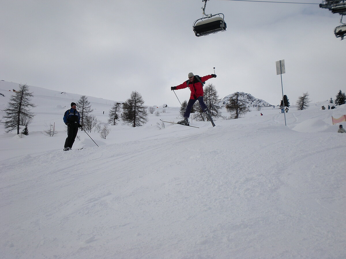 Stürmisch geht’s heut los. Und die Nordseiten der Hänge sind gesperrt. Einige hätten die Gondel bei soviel Bewegung eh nicht nehmen können. Zusammen mit Urlaubern aus ganz Europa drängen wir uns über die eingeengten Pisten. Gegen Nachmittag bekommen wir nochmals Zuwachs. Zwei Skifahrer und zwei Rodelfreunde – extra aus Aufheim nachgereist - schließen sich unserer Gruppe an. Wir sind erfreut. Abends gibt’s Live-Kino der besonderen Art. Welche anreisenden Gäste machen am schnellsten die Schneeketten an der Passstraße drauf?