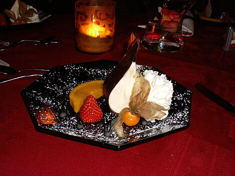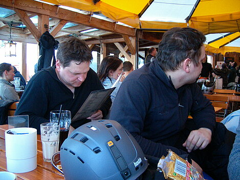 Wir haben Zuwachs bekommen. Drei weitere Skifahrer verlängern ihren Skiurlaub mit uns. Und sie haben schönes Wetter mitgebracht! Da machen die vielfältigen Hänge gleich doppelt so viel Spaß! Einige sehen den ganzen Tag über nur Schwarz(e Pisten). Aber auch diejenigen waren am Abend zum üppigen 5-Gänge-Menü müde und zufrieden.