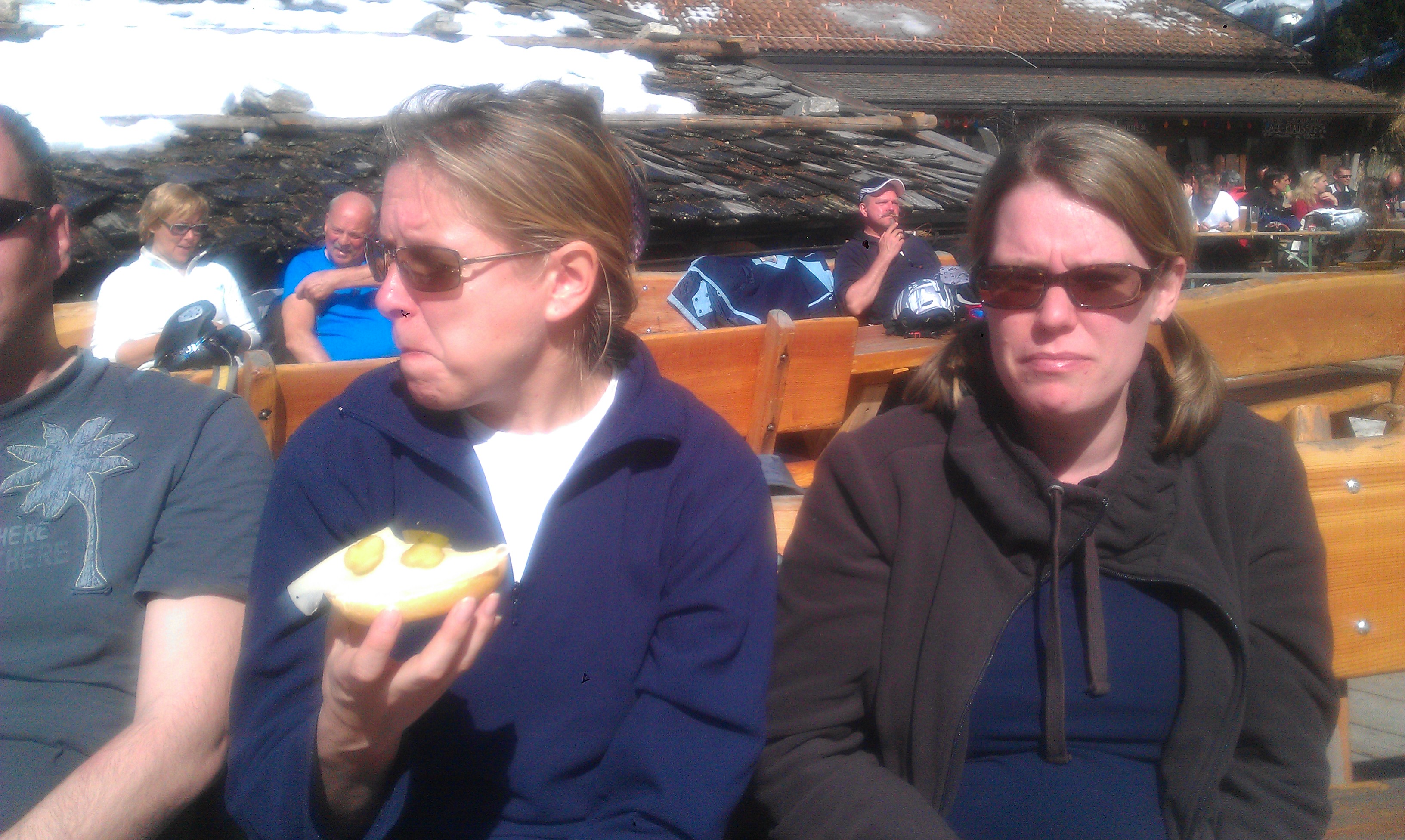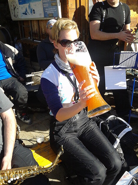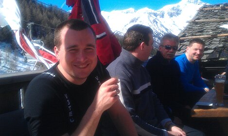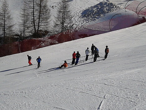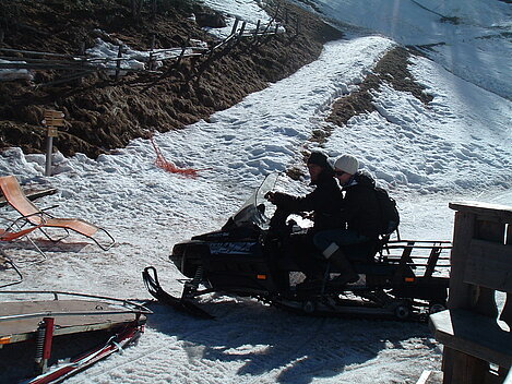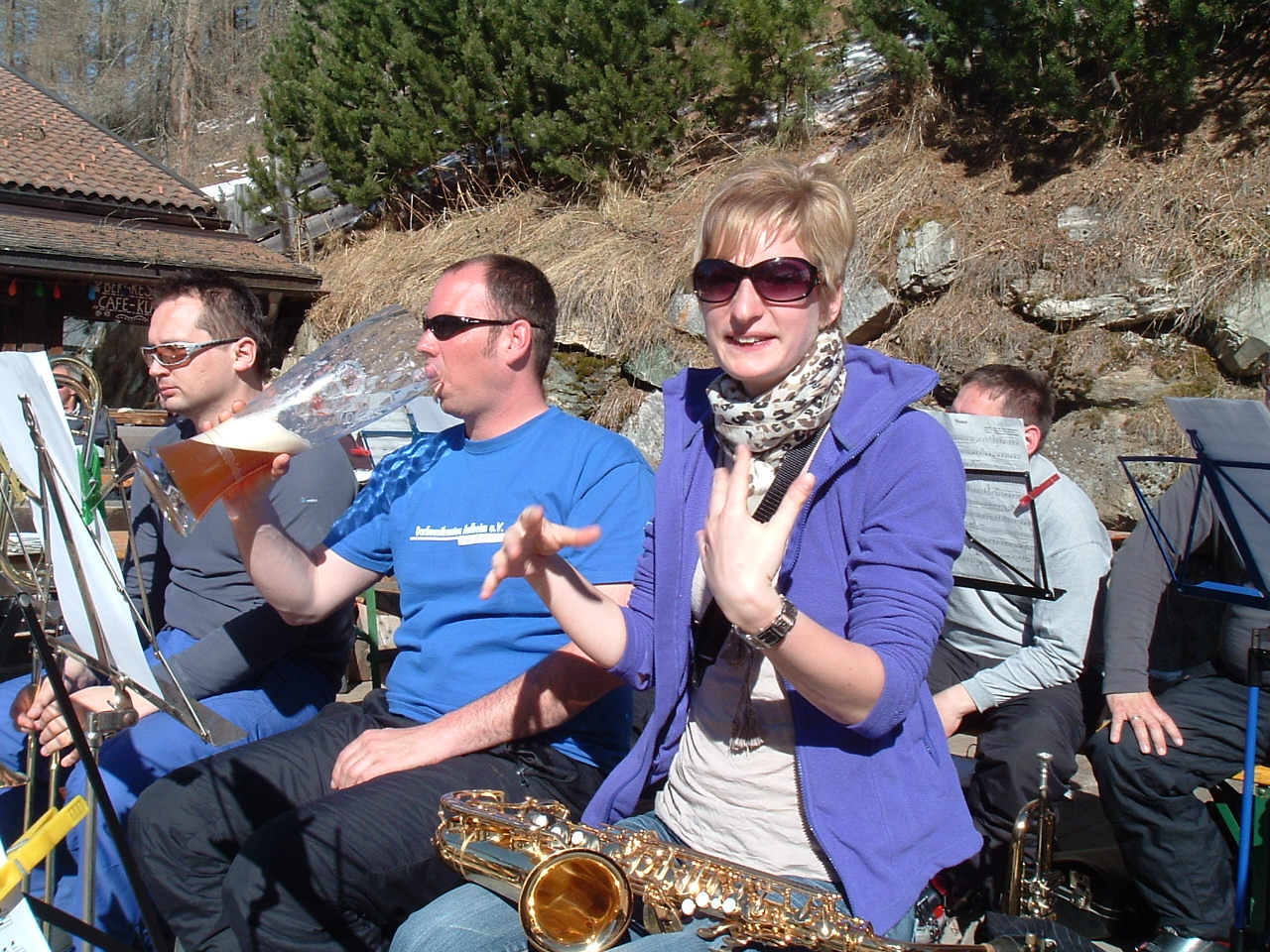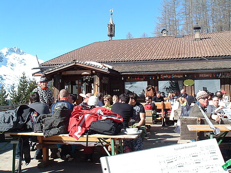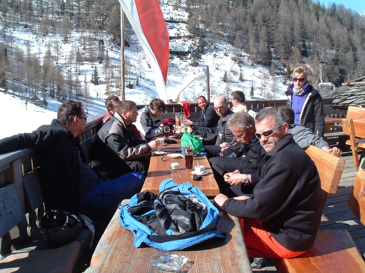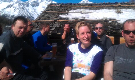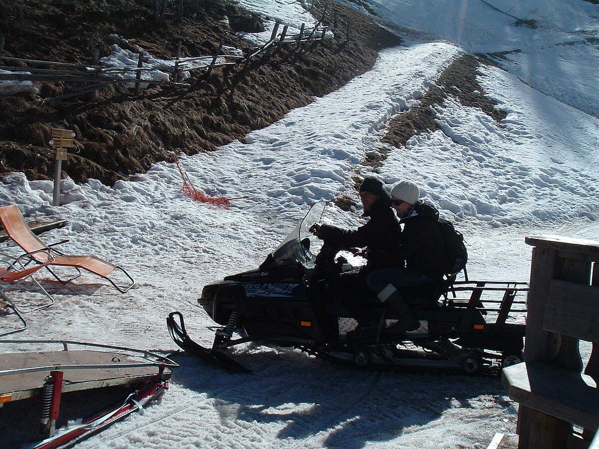 So kamen Skifahrer, Snowboarder und die mitgereisten Sonnenanbeter voll auf ihre Kosten. Und auch die Gäste der Speckalm. Denn erstmals brachten die Dorfmusikanten ihre Instrumente mit. Inklusive Trommel und Tuba spielte die Skifahrer-Besetzung auf der Sonnenterasse für die Gäste und den Hüttenwirt Sepp. Nach dem reichhaltigen Abendessen wurden die Abende gemeinsam gestaltet. Bei Tabu, Dart oder Kicker in der gemütlichen Stube oder einem Nickerchen auf der gemütlichen Ofenbank. Oder man (Frau) pflegte einfach die Wehwehchen - während allerlei Geschichten erzählt wurden.