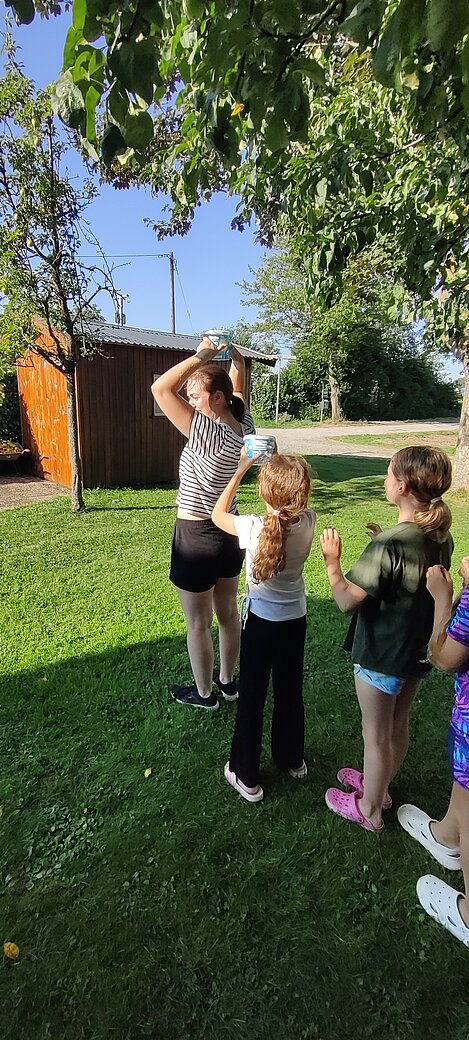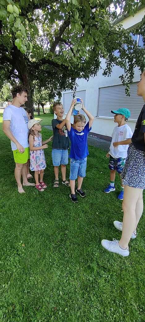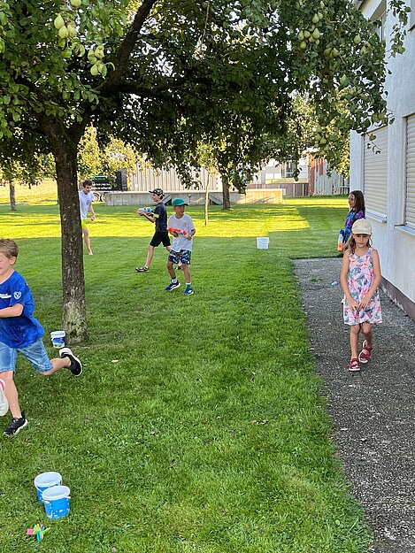 Bei einer Wasserschlacht konnten wir uns austoben und anschließend brachten verschiedene Spielstationen Abwechslung und viel Gelächter in den Garten. Beim gemeinsamen Spielen und Bewegen kam der Spaß nicht zu kurz.