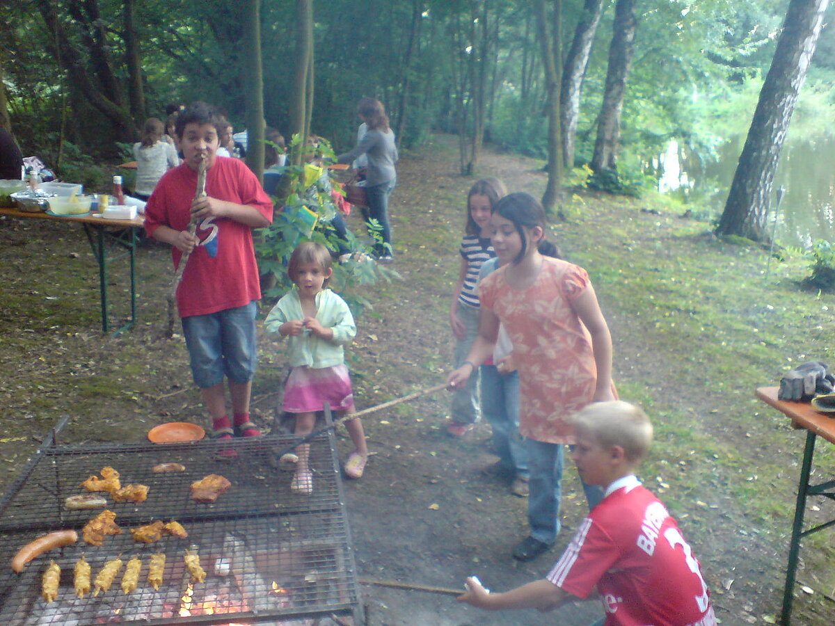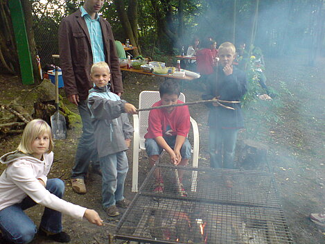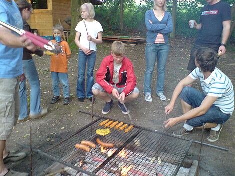 Nach anfänglichen Zweifeln am Wetter haben sich dann doch noch ca. 30 Kinder eingefunden, um ihr Steak, Würstchen und Stockbrot zu grillen.
