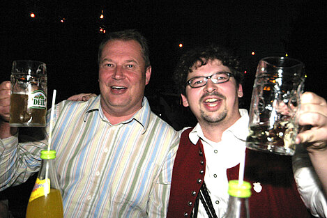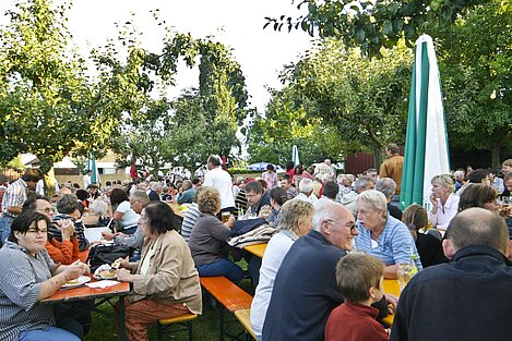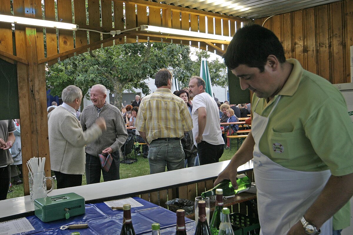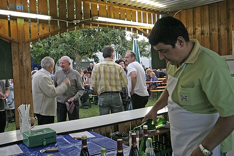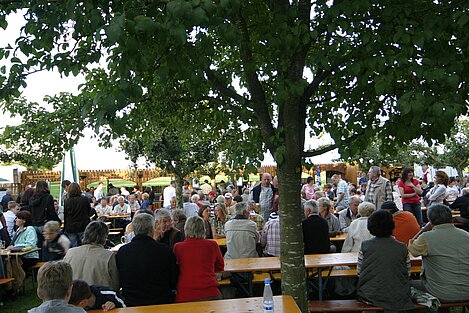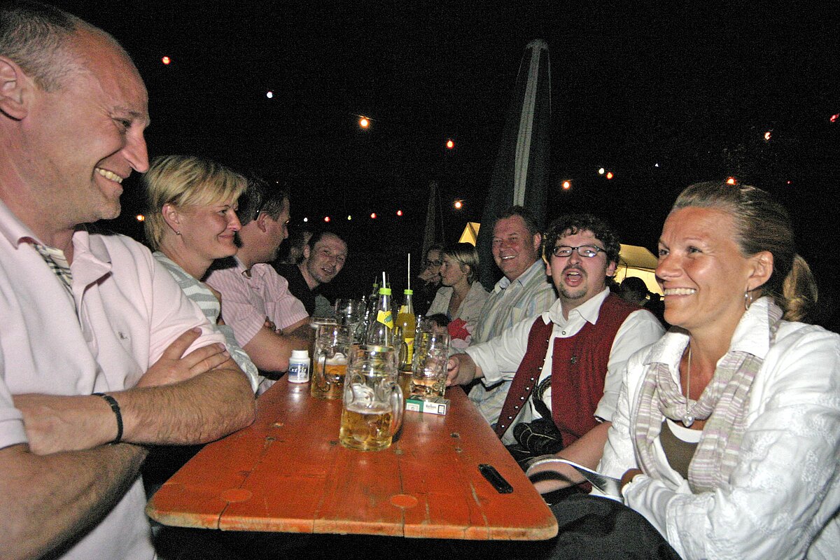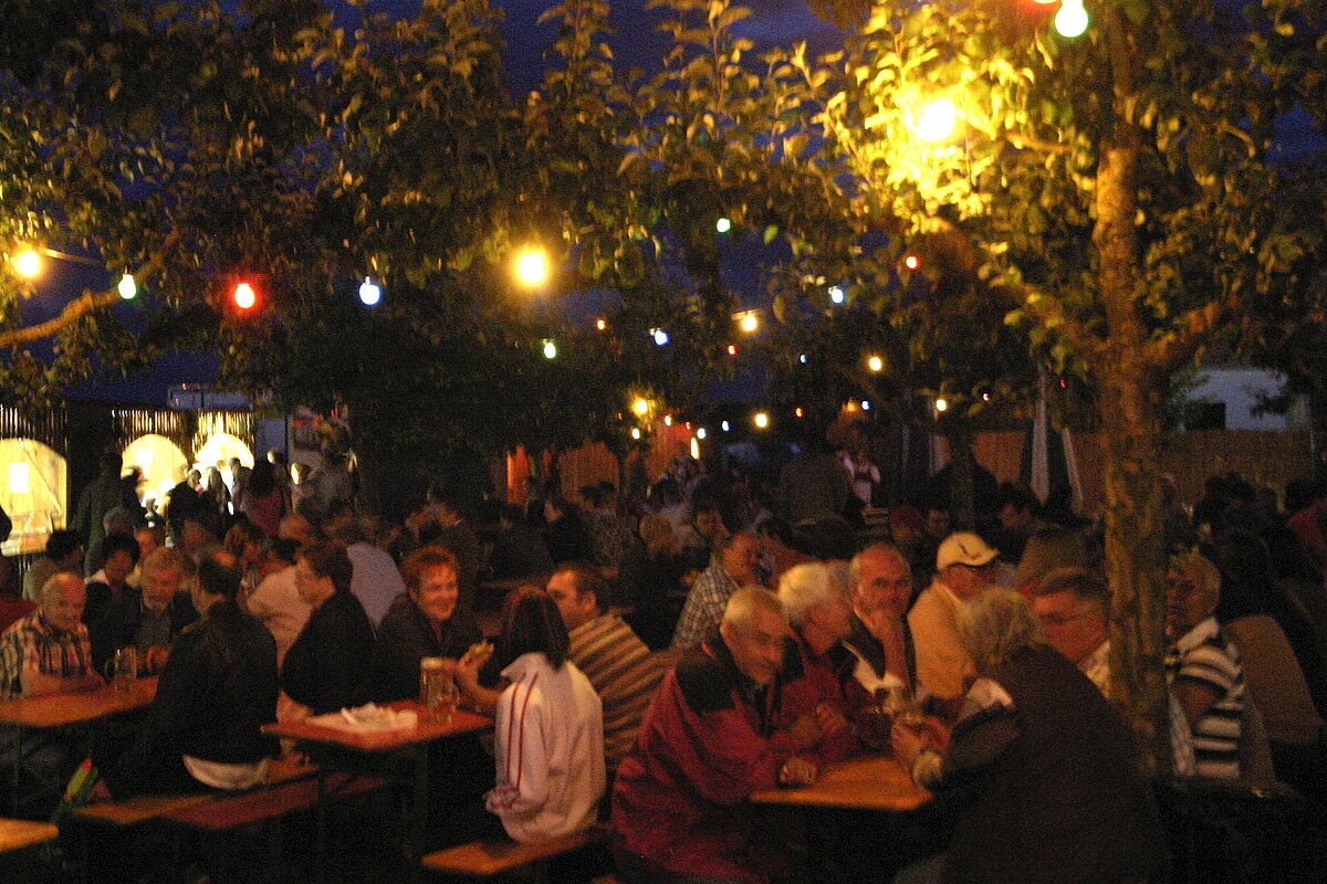 Als hätten die Dorfmusikanten das Wetter pünktlich zum Fest bestellt. Nach den kühlen und feuchten Wochen vor dem Fest zeigte sich die Sonne bis am Sonntagnachmittag von ihrer schönsten Seite. Und die Besucher aus Aufheim und Umgebung strömten in den Musikergarten genauso wie das Bier aus den Fässern. Zu diesem Auftakt spielte unsere Gruppe "Alfred und seine Musikanten" schöne böhmisch/mährische Musik. In der Küche wurden derweil die vielen Köstlichkeiten zum Abendessen zubereitet. Um 20.30 Uhr nahmen die Dorfmusikanten unter Leitung von Reinhold Görthofer auf der Bühne Platz und unterhielten die Besucher mit ihrer Unterhaltungsmusik bis um Mitternacht. In der gemütlichen Bar kamen derweil bei lauen Temperaturen und dem Andrang die Barkeeper ganz schön ins Schwitzen.