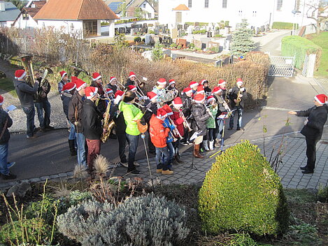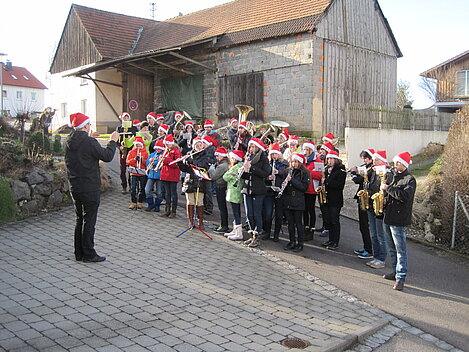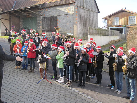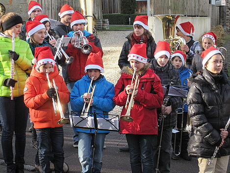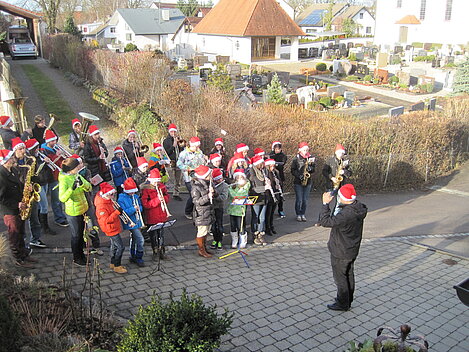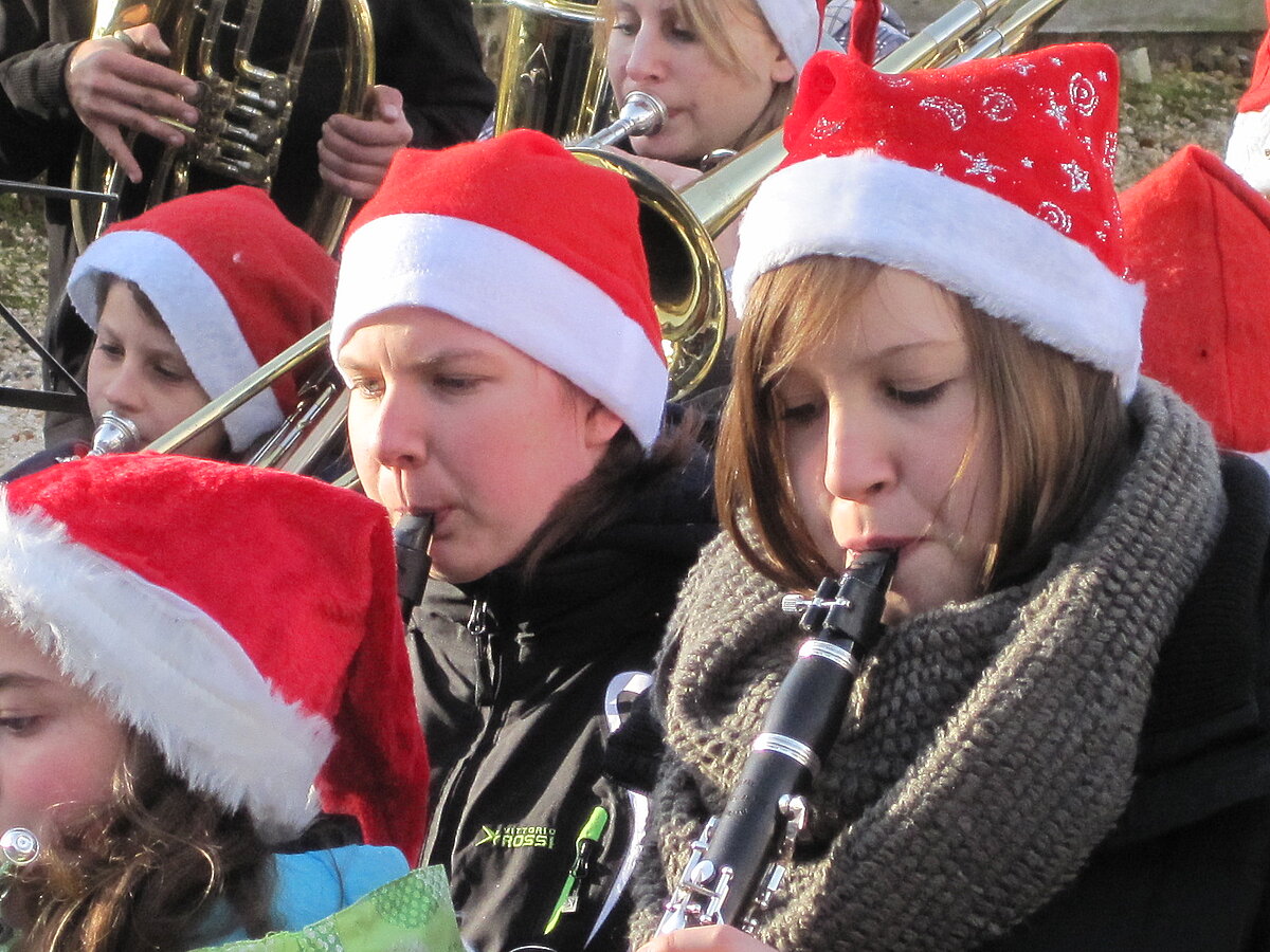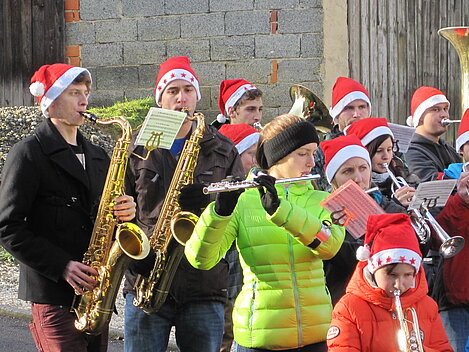 Nach guter alter "Dorfmusikanten-Tradition" haben auch heuer wieder unsere Jungmusiker/innen am Heiligen Abend an mehreren Plätzen im Ort Weihnachtslieder dargebracht