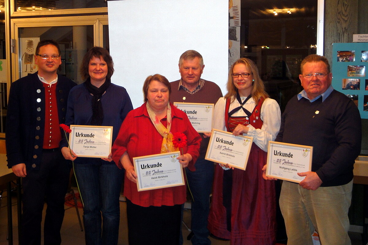 Für 25 jährige Mitgliedschaft konnten 9 Mitglieder geehrt werden. U.a. auch die 1. Vorsitzende Frau Astrid Birkholz, Heidi Birkholz, Herta Huber, Hermann Junginger, Herbert Kaschura, Wolfgang Laible, Adolf Mohring, Tanja Müller, Edith Schweigart.