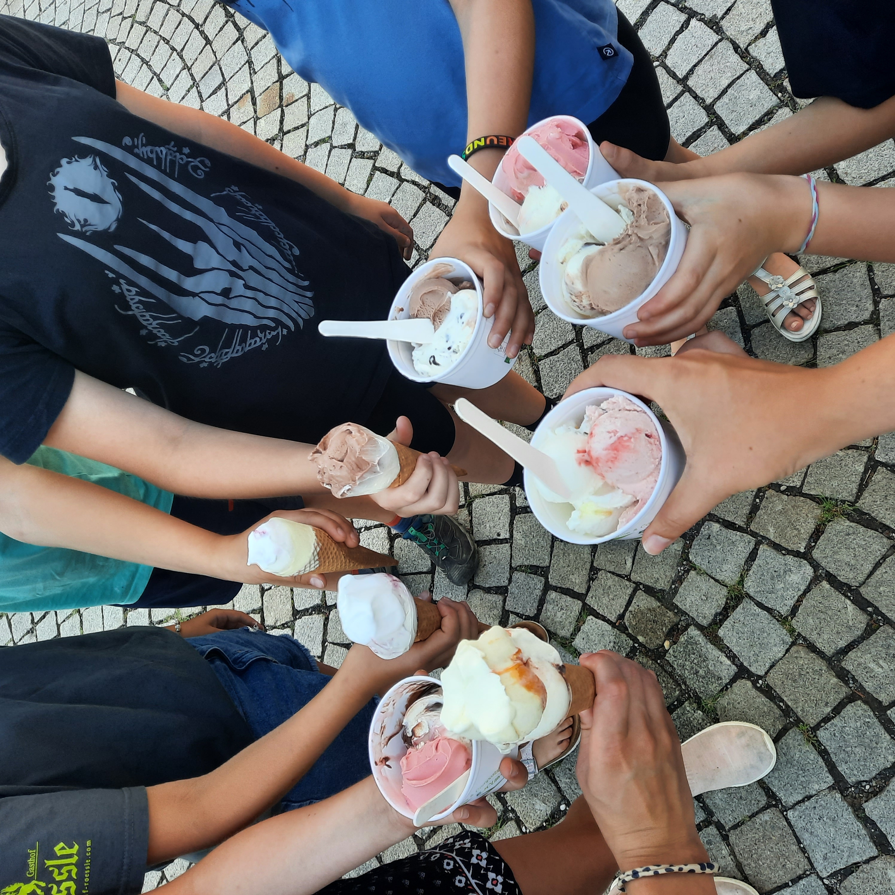 Die Anfängergruppe beendet dieses Schuljahr mit einem gemeinsamen Eisessen in der Weißenhorner Altstadt.