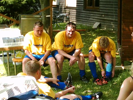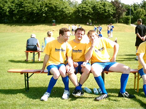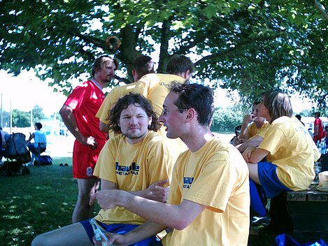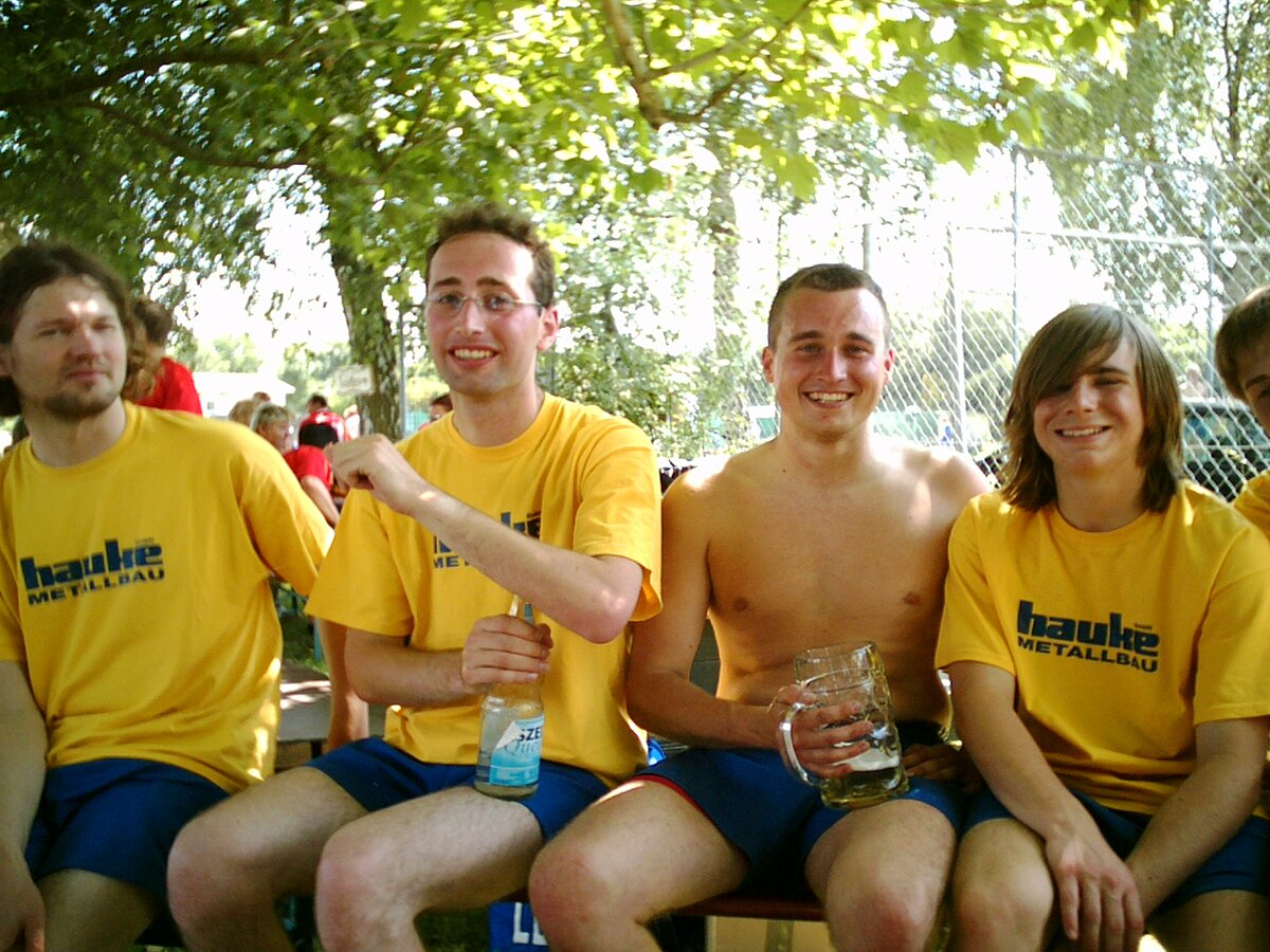 Bei strahlendem Sonnenschein wurden die "Musiker Aufheim" den Erwartungen schon im ersten Spiel gerecht. Nach spannenden, für die Fans auch Nerven strapazierenden, 10 Minuten stand das erste Ergebnis fest. Die Musiker setzten sich mit einem 1:0 gegen das Eiscafe Europa durch. Dank einem Torwart, von dem sich Oliver Kahn noch einiges abschauen könnte, einem hervorragenden Sturm und einer nicht weniger erwähnenswerter Verteidigung gewannen die Hobbykicker auch die weiteren zwei Spiele und kamen somit als Gruppensieger weiter. Mit bewährter Technik und neuem Torwart zogen die dann gegen die "Außenseiter". Nach einem Unentschieden mussten die Musiker leider beim 9 Meterschießen ihre erste Niederlage einstecken. Nun kam das große Spiel: Musiker Aufheim gegen die Vätterleswirtschaft. Es ging um die Platzierung 5 oder 6. Durch dieses fantastische Spiel machte das Wetter einen Strich durch die Rechnung. Mitten im Spiel fing es an zu regnen und bereits nach kurzer Zeit waren die Spieler, sowie die paar wenigen Fans, die noch nicht geflüchtet waren, klatsch nass. Trotz dieser schwierigen Bedingungen schlugen sich unsere Musiker wacker und holten erneut ein 0:0 raus. Beim großen Entscheidungskampf beim 9-Meter-Schießen mussten sie sich ganz knapp geschlagen geben. Insgesamt war das ein teils heißer, teils feucht fröhlicher Spaß! Gratulation an alle Teilnehmer und an unsere spitzen Musikermannschaft! Es spielten: Jens Bransky, Johannes Görthofer, Martin Kast, Christian Kast, Timo Lamprecht, Marco Lamprecht und Harald Mohring. Ein herzliches Dankeschön auch an unsere "Aushilfen": Lars, Stefan und Armin, die mit ihrem tollen Spiel einiges zum Erfolg der Musiker beigetragen haben! Bis nächstes Mal!!!