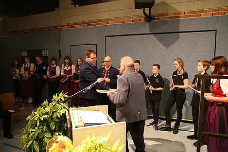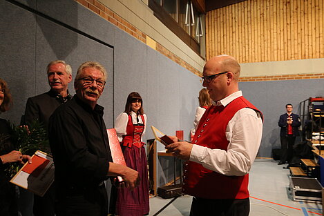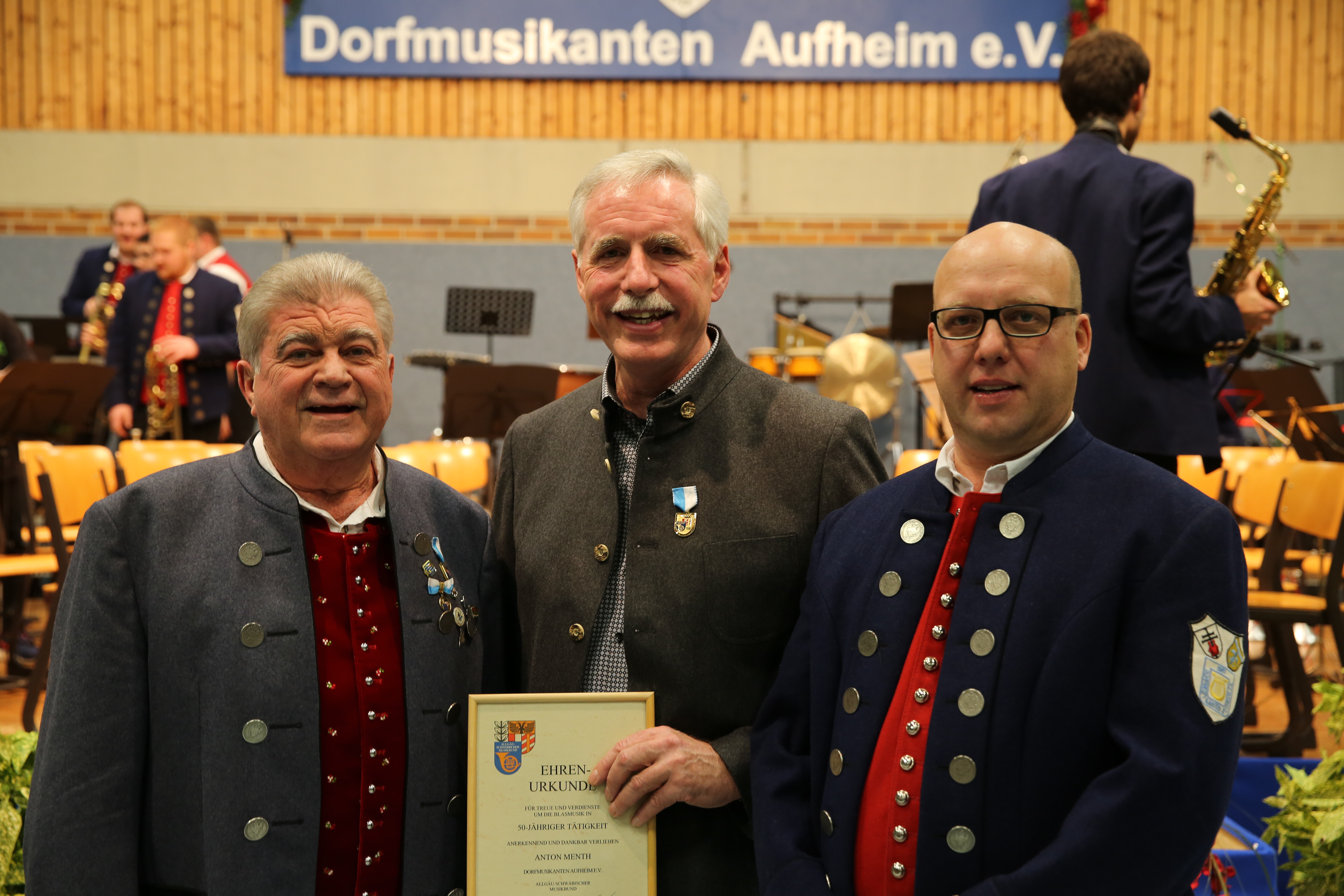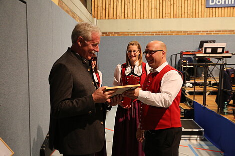 Neben der Ehrung für 50 Jahre aktives Musizieren im Allgäu-Schwäbschen-Musikband durch den ASM-Ehrenbezirksvorsitzenden Gerhard Snehotta, konnte Anton Menth auch der Dank für das gleichzeitige und bis heute außermusikalisch anhaltende Engagement ausgesprochen werden. Der 1. Vorsitzende dankte ihm für langjährige Mitarbeit in der Vereinsverwaltung, beispielsweise als langjähriger zweiter Vorsitzender. Bis heute organisiert er die zahlreichen Ständchen des Vereins und gilt als das lebendige Chronikgedächtnis.