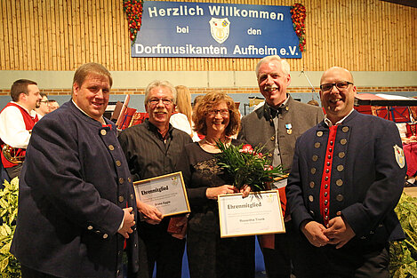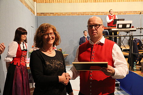 So bedankte er sich bei Roswitha Trunk für den Einsatz und das Engagement für Musikanten und Verein in den vergangenen Jahrzehnten, wo auch viele Aktivitäten im Hintergrund den anderen Mitgliedern verborgen blieben. Vereinsfeste und Aktivitäten, bei denen viele bis heute unvergessen sind, waren durch ihre Mithilfe erst möglich. Als Ehefrau des in 2011 viel zu früh verstorbenen ehemaligen Vorsitzenden Georg Trunk stand sie jahreslang an seiner Seite und half bei den täglichen kleinen und großen Dingen im Verein. Neben der - auch musikalischen - Erziehung ihrer Kinder Alexandra, Anna, Christian und Julia.