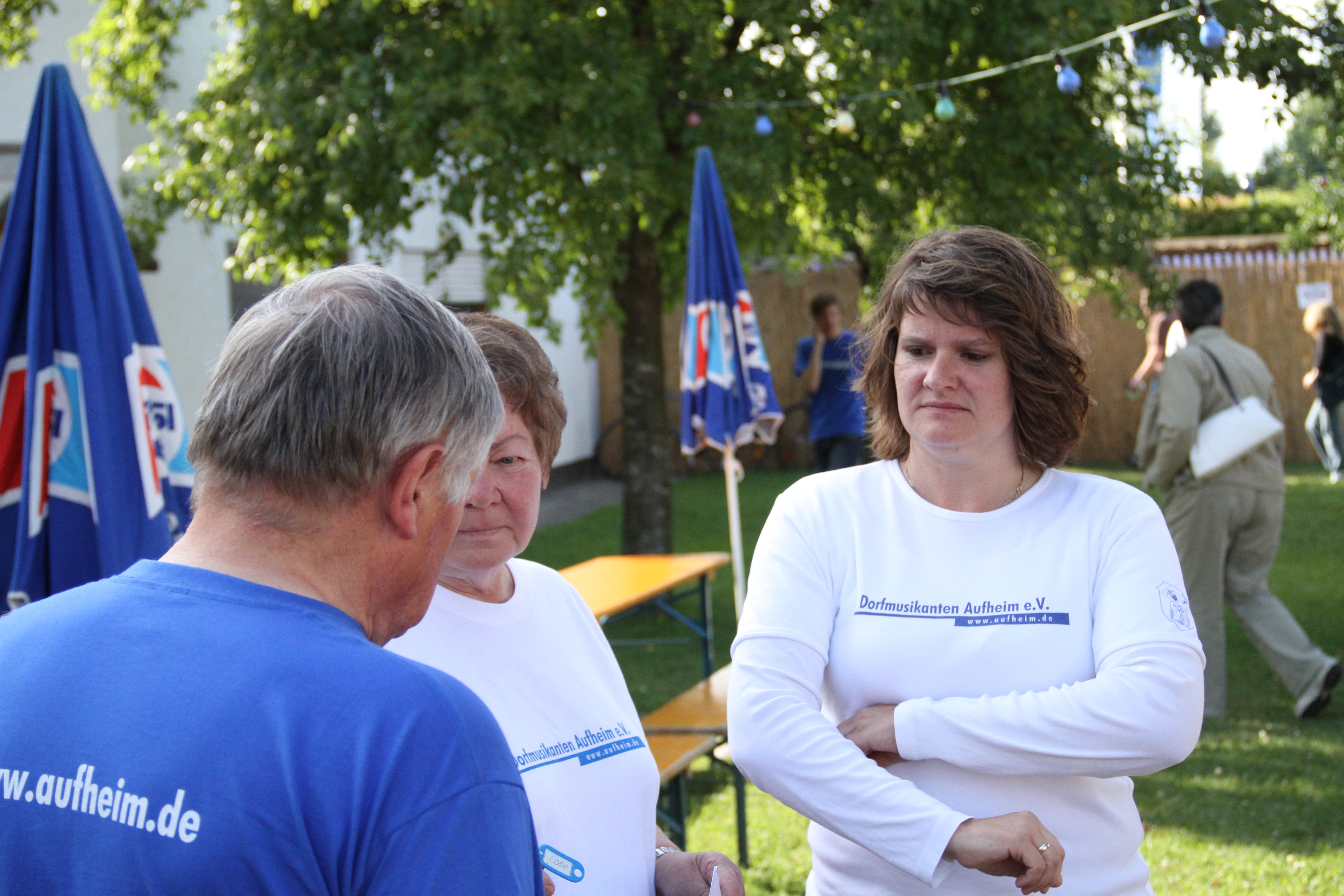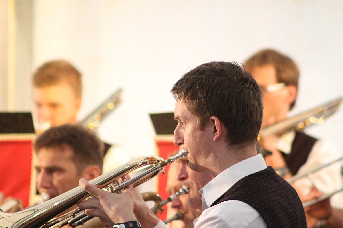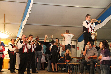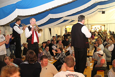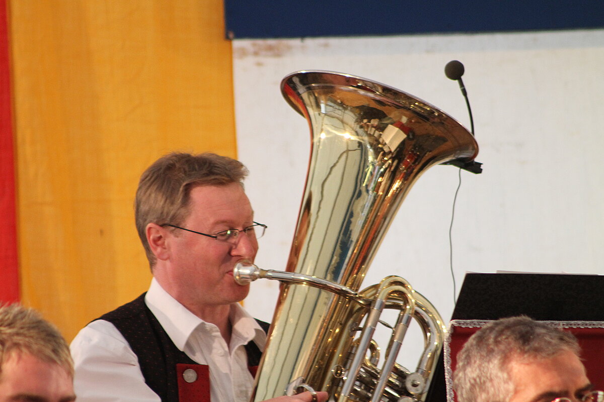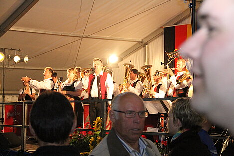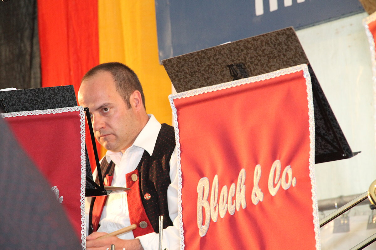 Zum Festbeginn am Freitag, 15. Juli ab 18 Uhr spielte "Alfred und seinen Musikanten" unter Leitung unseres Ehrendirigenten Alfred Taubenheim schwungvoll mit böhmisch-mährischer Blasmusik auf und schob die letzten Wolken beiseite. Dies lockte auch früh die ersten Besucher in den Musikergarten. Mit dem folgenden Blasmusikabend der Spitzenklasse kamen ab 20 Uhr die zahlreich erschienenen Fans und Freunde der Blasmusikformation Blech&Co. unter Leitung von Toni Müller voll und ganz auf ihre Kosten. Mit ihrem abwechslungsreichen Repertoire aus altbekannten Polka-Klassikern und modernen Kompositionen, aber auch Interpretationen aus Swing und Pop, oft begleitet von herrlichem Gesang, übertrug sich bei Spitzen-Sound die gute Stimmung bald auf das voll besetzte Festzelt. Sicherlich hat auch die gute Stimmung und Wiedersehensfreude mit den Kameraden vom extra angereisten, befreundeten Spielmannszug "In Treue Fest" aus Senden/Westfalen dazu beigetragen.