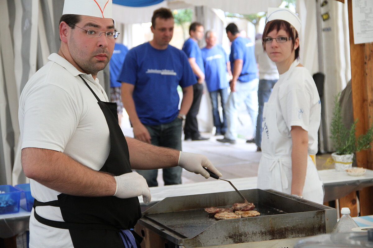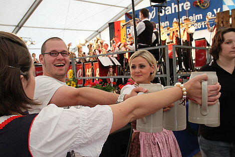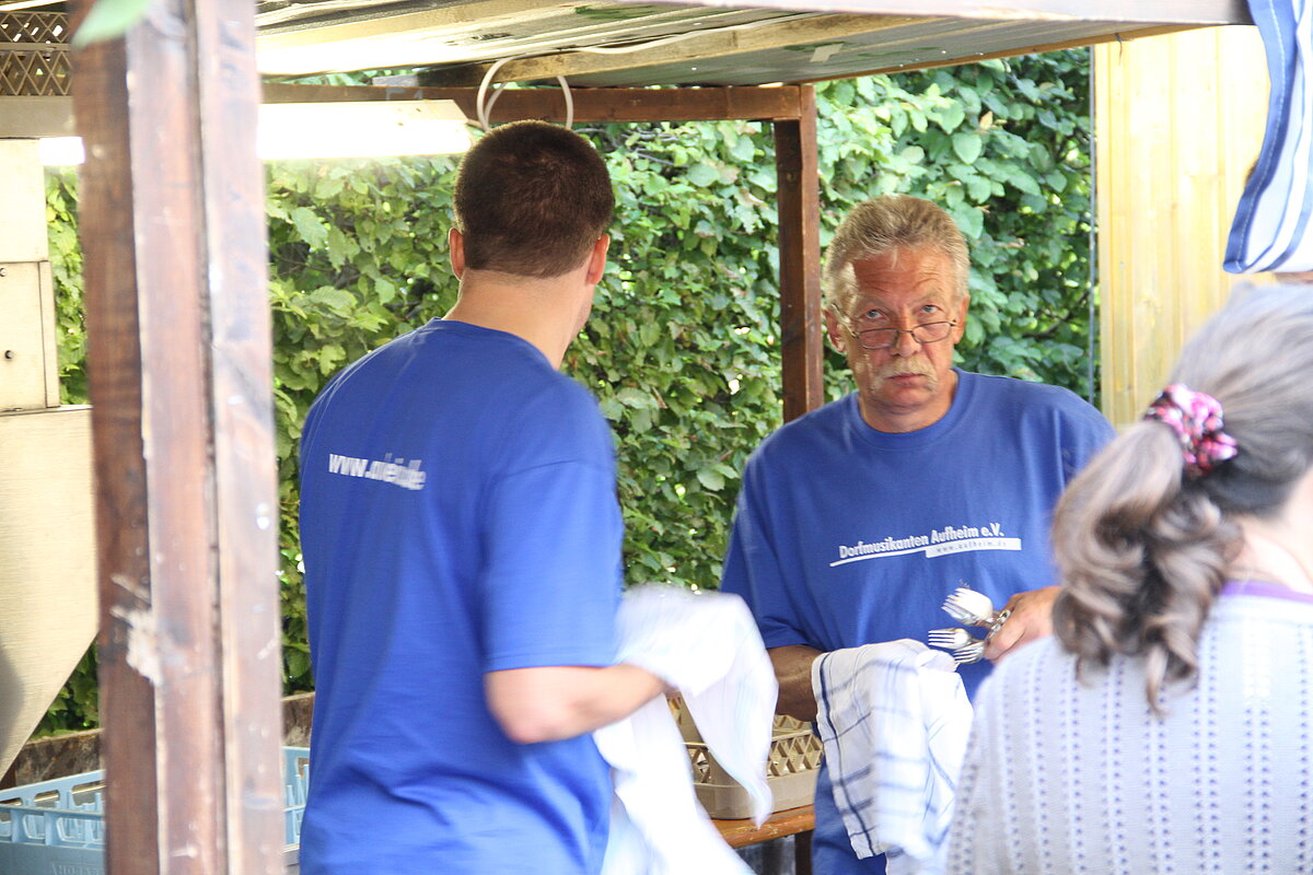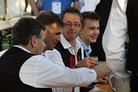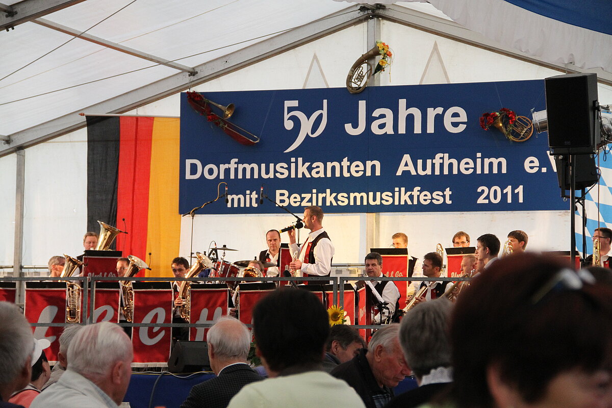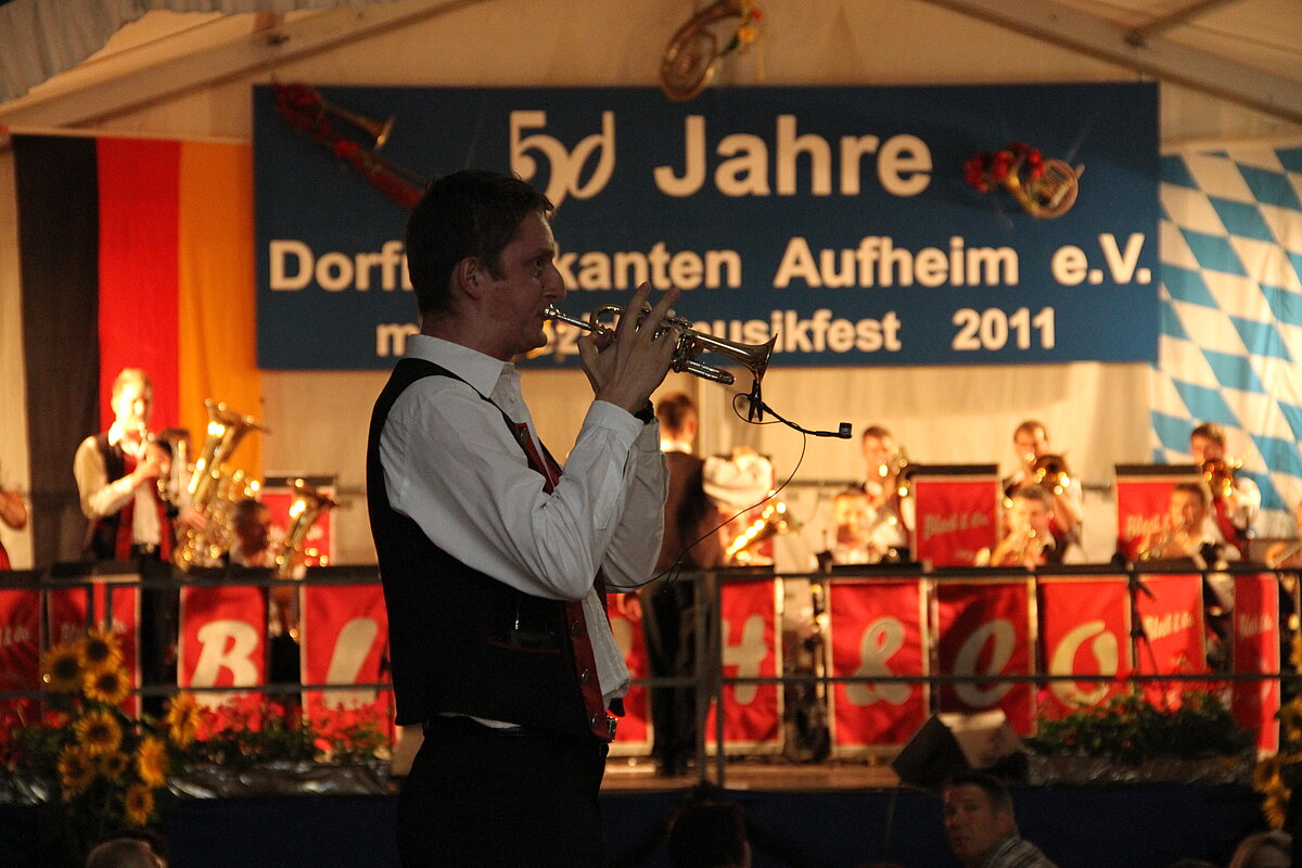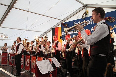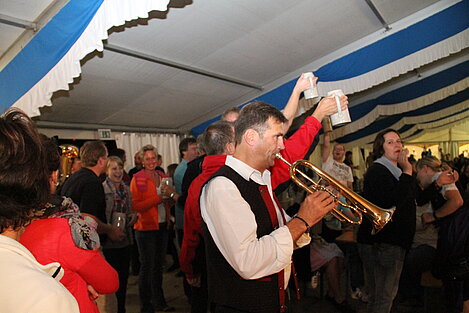 Zum Festbeginn am Freitag, 15. Juli ab 18 Uhr spielte "Alfred und seinen Musikanten" unter Leitung unseres Ehrendirigenten Alfred Taubenheim schwungvoll mit böhmisch-mährischer Blasmusik auf und schob die letzten Wolken beiseite. Dies lockte auch früh die ersten Besucher in den Musikergarten. Mit dem folgenden Blasmusikabend der Spitzenklasse kamen ab 20 Uhr die zahlreich erschienenen Fans und Freunde der Blasmusikformation Blech&Co. unter Leitung von Toni Müller voll und ganz auf ihre Kosten. Mit ihrem abwechslungsreichen Repertoire aus altbekannten Polka-Klassikern und modernen Kompositionen, aber auch Interpretationen aus Swing und Pop, oft begleitet von herrlichem Gesang, übertrug sich bei Spitzen-Sound die gute Stimmung bald auf das voll besetzte Festzelt. Sicherlich hat auch die gute Stimmung und Wiedersehensfreude mit den Kameraden vom extra angereisten, befreundeten Spielmannszug "In Treue Fest" aus Senden/Westfalen dazu beigetragen.