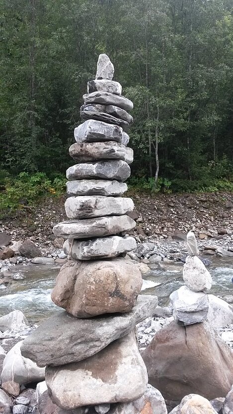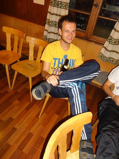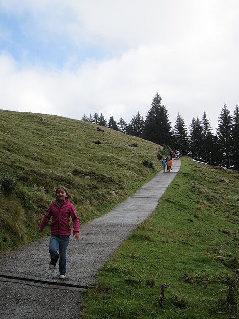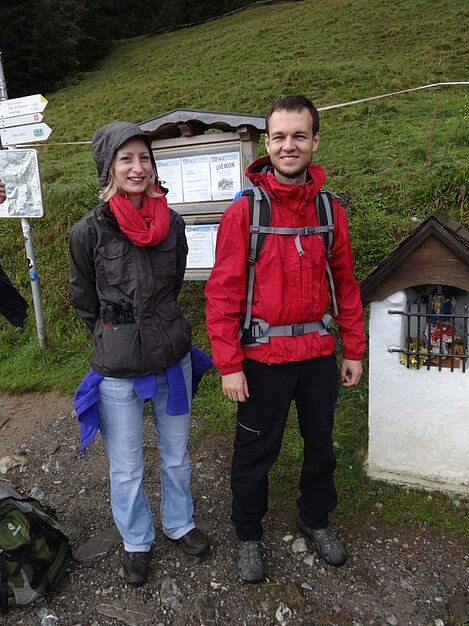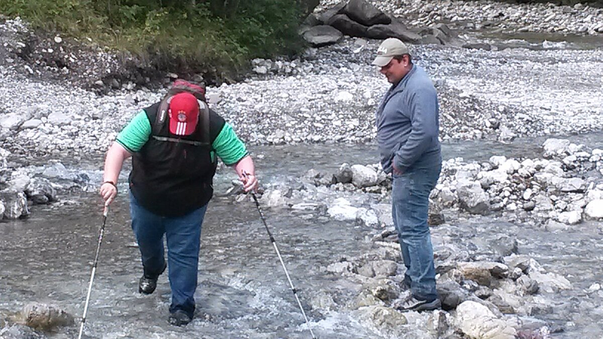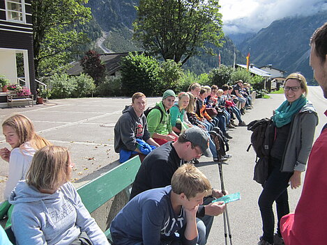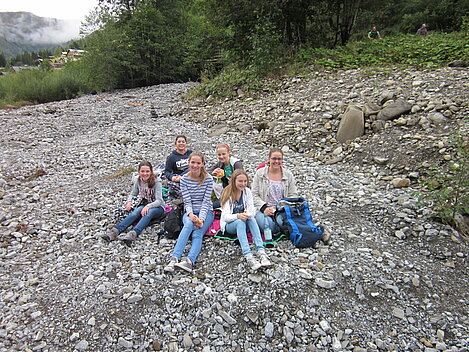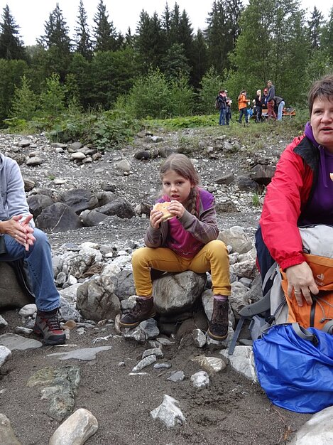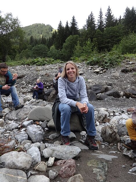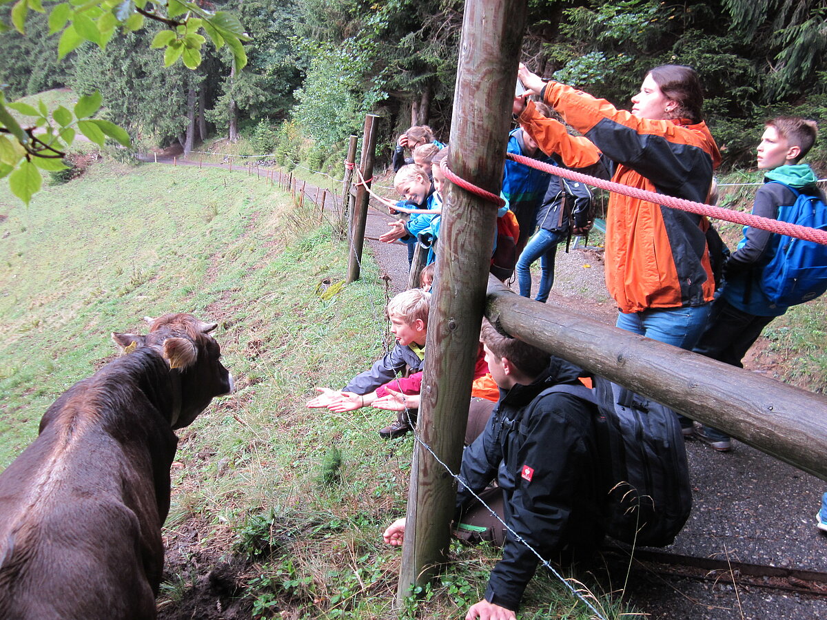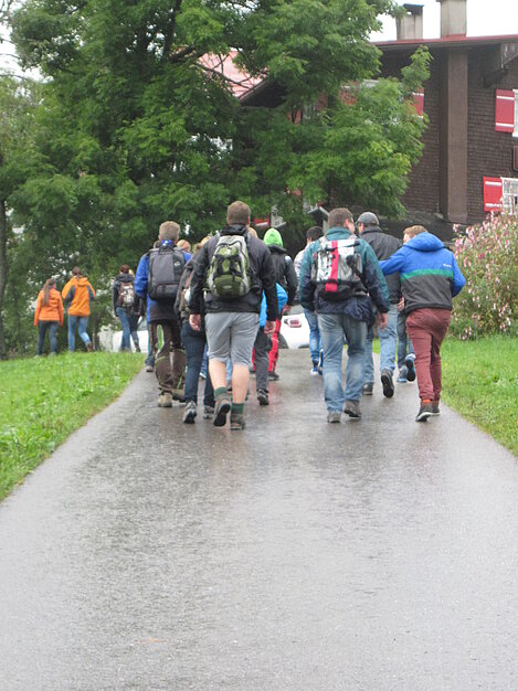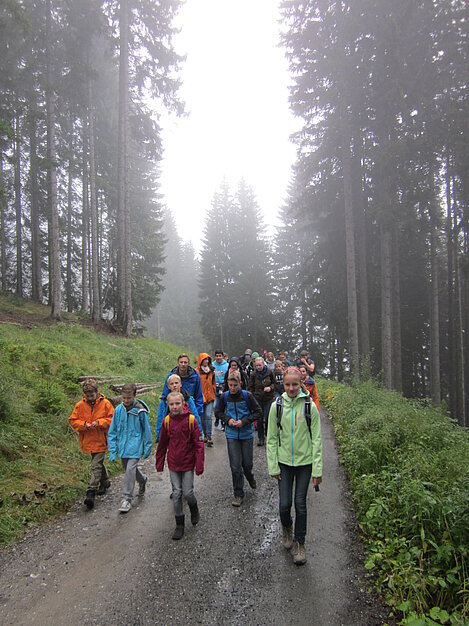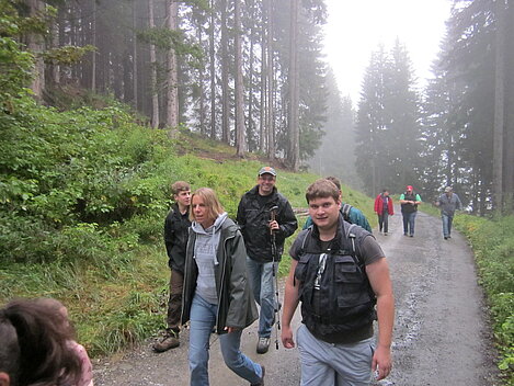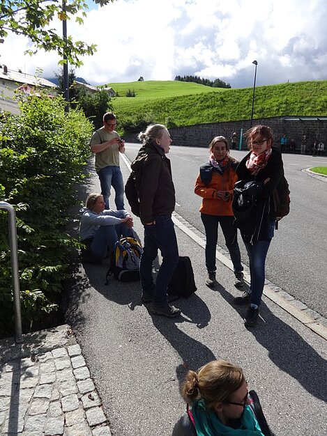 Der Samstag begann trübe und regnerisch. Da die Aussichten sich nach dem gemütlichen Frühstück besserten (obwohl das Bergpanorama in den Wolken anfangs nicht einmal zu erahnen war), begannen die Vorbereitungen für die traditionelle Wanderung. Bestens ausgerüstet musste zuerst ein kleiner Anstieg bewältigt werden. Danach führte der Weg hinunter ins Tal, vorbei an Wiesen und Kühen und zwischenzeitlich Sonnenschein in Richtung Breitach. Nach der Pause führte der Weg entlang dem Fluss wieder nach Mittelberg. Bevor es mit dem Bus wieder zurück in Richtung Hütte ging.