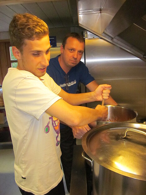 Als die kleine Fahrzeugkolonne und die rund 40 Mitfahrer im Haus Bergengrün in Mittelberg angekommen waren, begann sofort der Einzug in den ehemaligen Bergbauernhof. Auch die Helferinnen und Helfer begannen sofort mit den Vorbereitungen für das Abendessen. Nach dem Abwasch trafen sich alle gemeinsam im Wohnzimmer zu einem Spieleabend, bei dem keiner lange auf seinen Plätzen bleiben durfte. Mit dem Ergebnis, das sich alt und jung nach kürzester Zeit kennenlernten. So dauerte es auch nach der verkündeten Bettruhe noch eine ganze Weile, bis Stille im Haus einkehrte.
