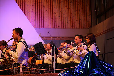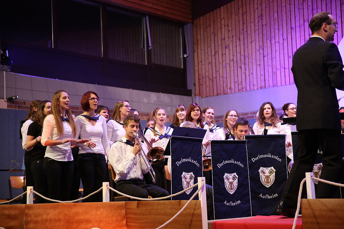 Die Aufheimer Dorfmusikanten sind immer für eine Überraschung gut. Und so bot das Jahreskonzert in der vollen Jehle-Halle heuer neben moderner und klassischer Blasmusik auf hohem Niveau so manche unterhaltsame Einlage.