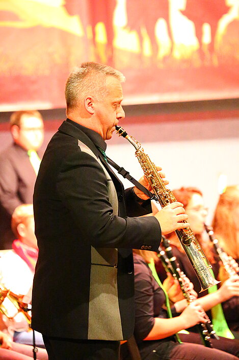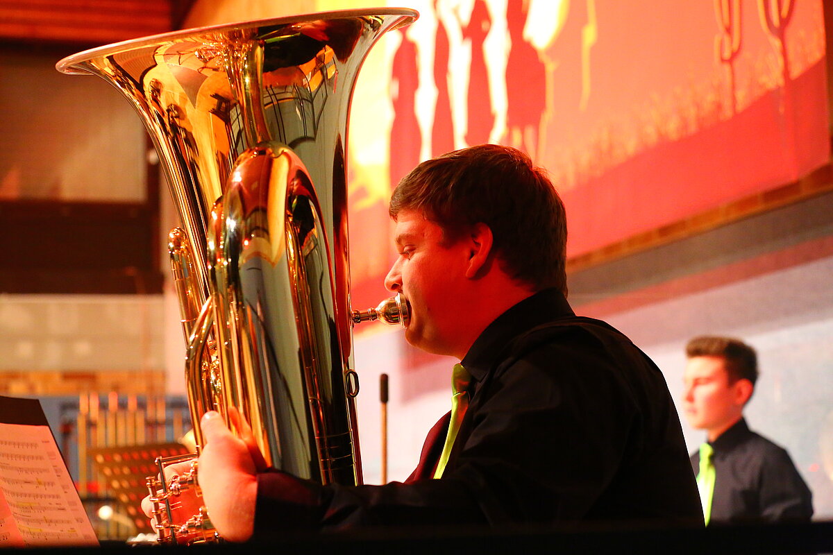 Mit der berühmten Titelmelodie zur Westernserie „Bonanza“ stiegen die Dorfmusikanten in ihr Programm ein. Mit weiteren Filmsongs schwang die Kapelle musikalisch das Lasso: Den Musikern gelangen unter Dirigent Alexander Menth lebhafte Interpretationen von Ennio Morricones amüsantem Thema aus dem Spaghetti-Western-Hit „My name is nobody“ und John Williams’ anspruchsvollem Werk „The Cowboys“. Aber auch die Zugabe hatte es in sich: Das Medley „Moment for Morricone“ lieferte einen ganzen Strauß an Westernmelodien und Filmerinnerungen an Helden und Halunken mit Cowboyhut und gezückter Kanone. Dafür gab es auch viel Applaus. Artikel aus der NUZ vom 27.11.2019