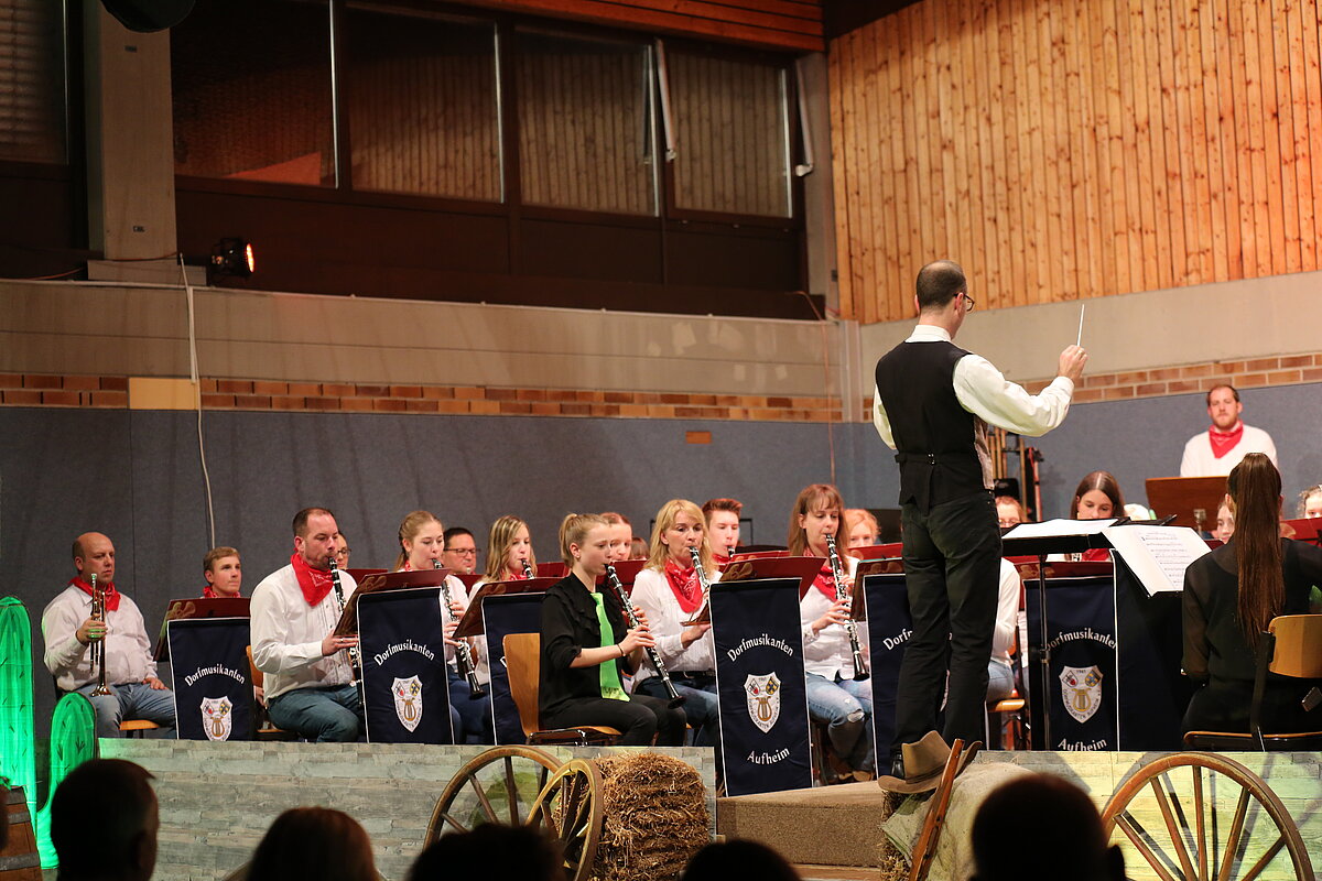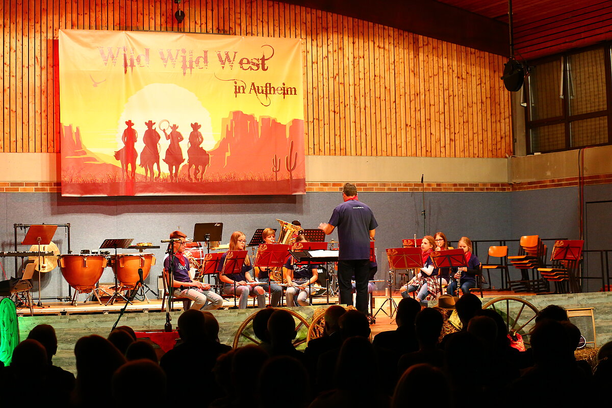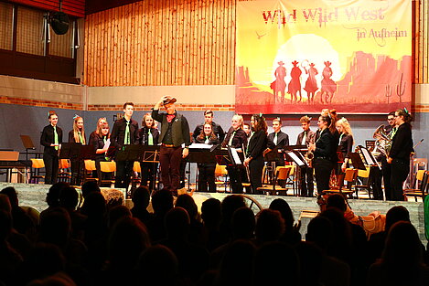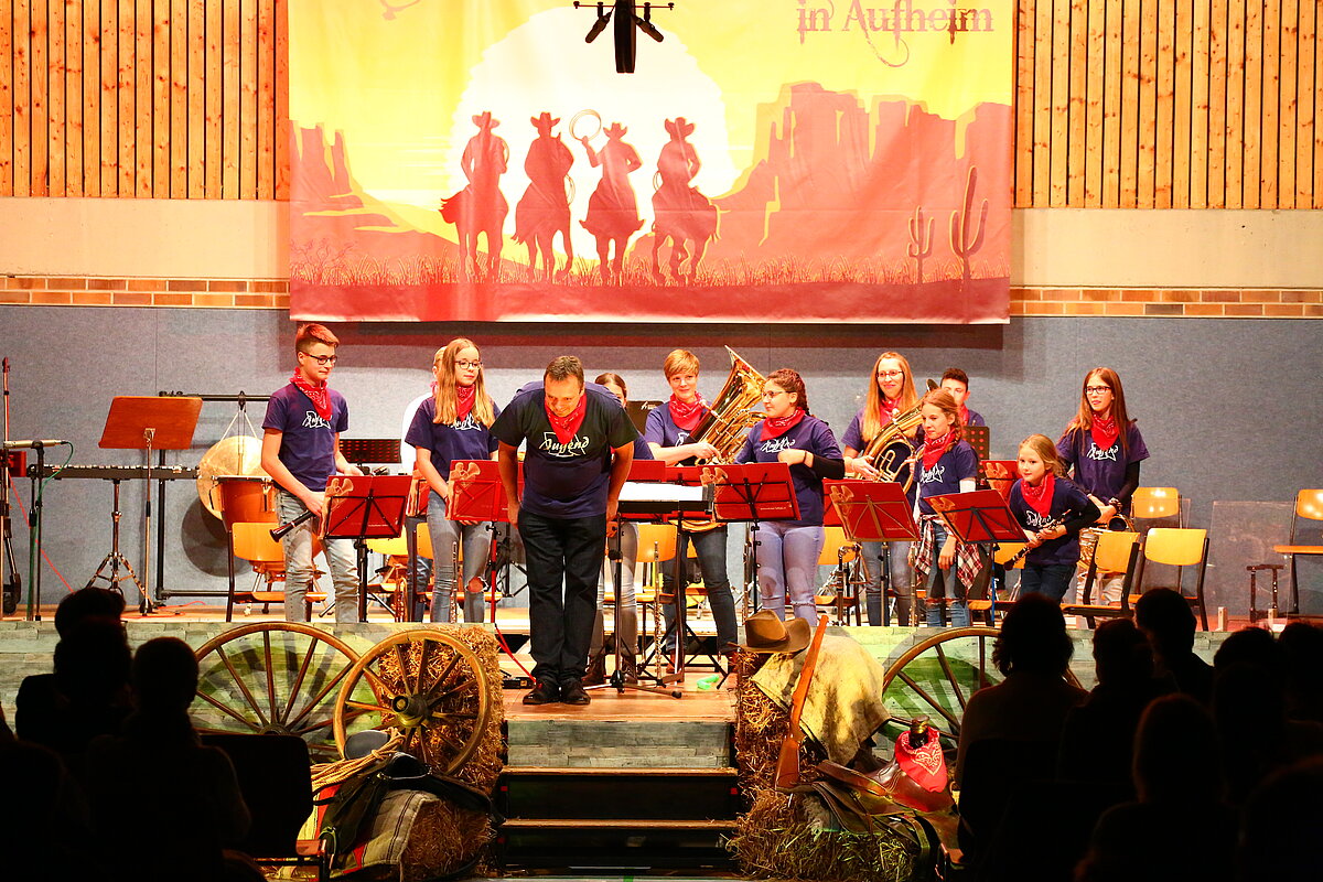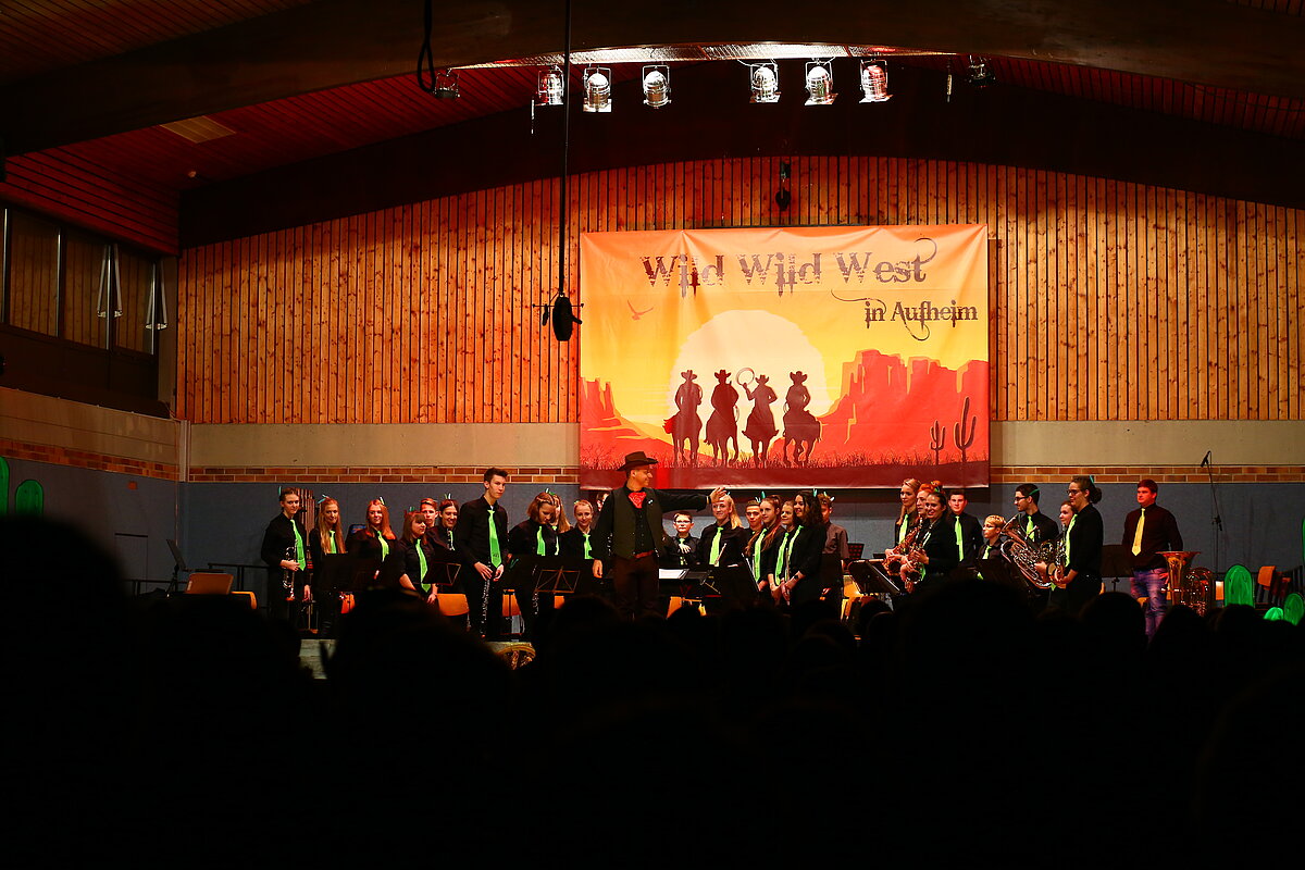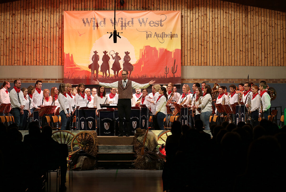 Pferdehufe, Klapperschlangen und ratternde Züge haben am Samstagabend in der Bürgermeister-Jehle-Halle Westernstimmung verbreitet. Mit dem Motto „Wild Wild West in Aufheim“ hatten die Dorfmusikanten ihr Jahreskonzert überschrieben. Das Programm war gespickt mit musikalischen Reminiszenzen an Zeit und Geschichten von Cowboys, Indianern und ausgedörrter Prärie.