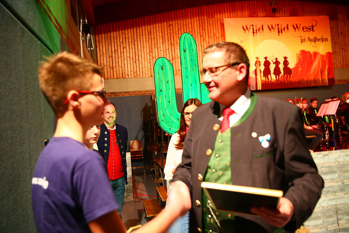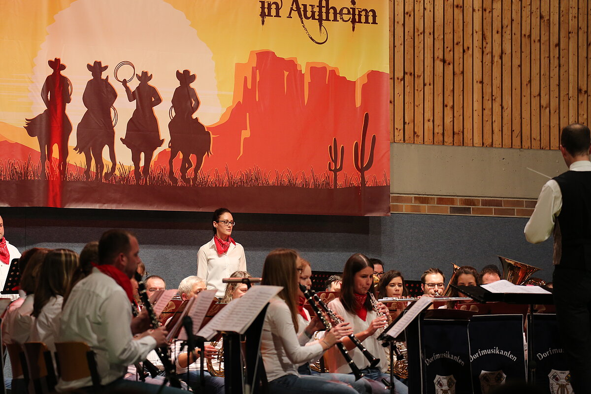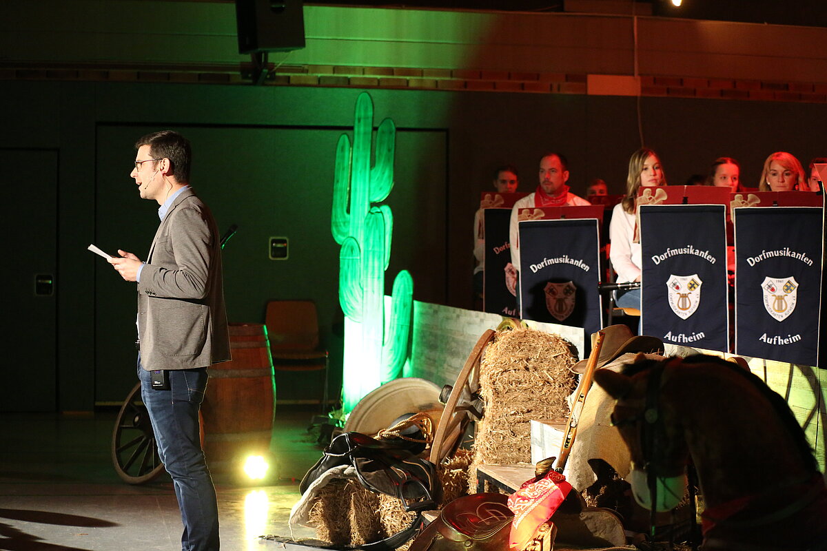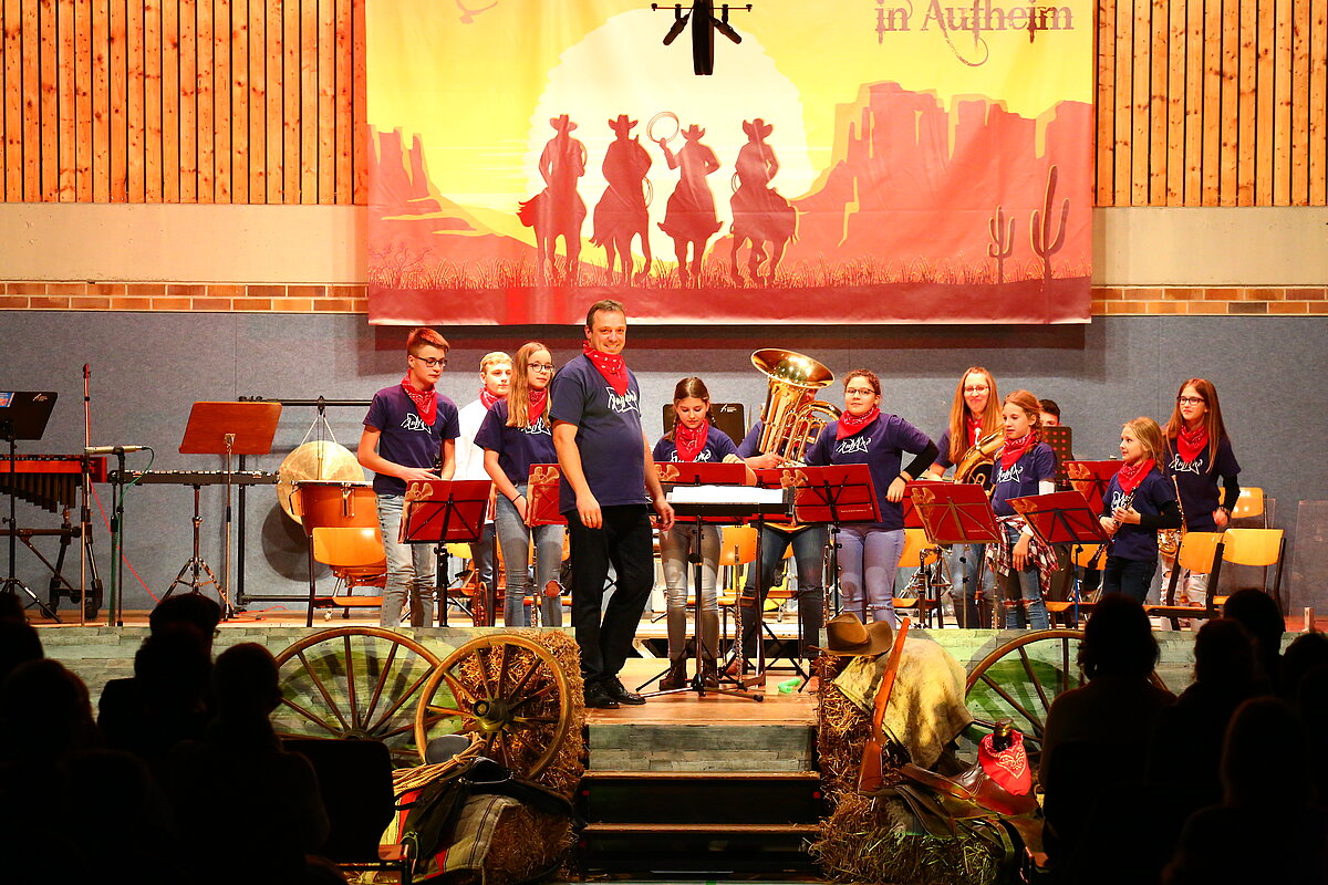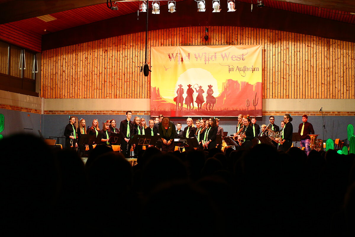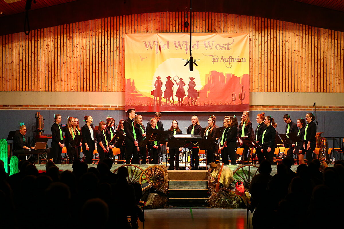 Pferdehufe, Klapperschlangen und ratternde Züge haben am Samstagabend in der Bürgermeister-Jehle-Halle Westernstimmung verbreitet. Mit dem Motto „Wild Wild West in Aufheim“ hatten die Dorfmusikanten ihr Jahreskonzert überschrieben. Das Programm war gespickt mit musikalischen Reminiszenzen an Zeit und Geschichten von Cowboys, Indianern und ausgedörrter Prärie.