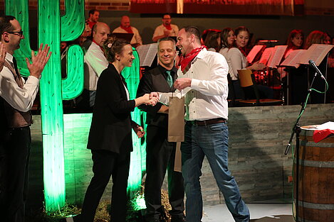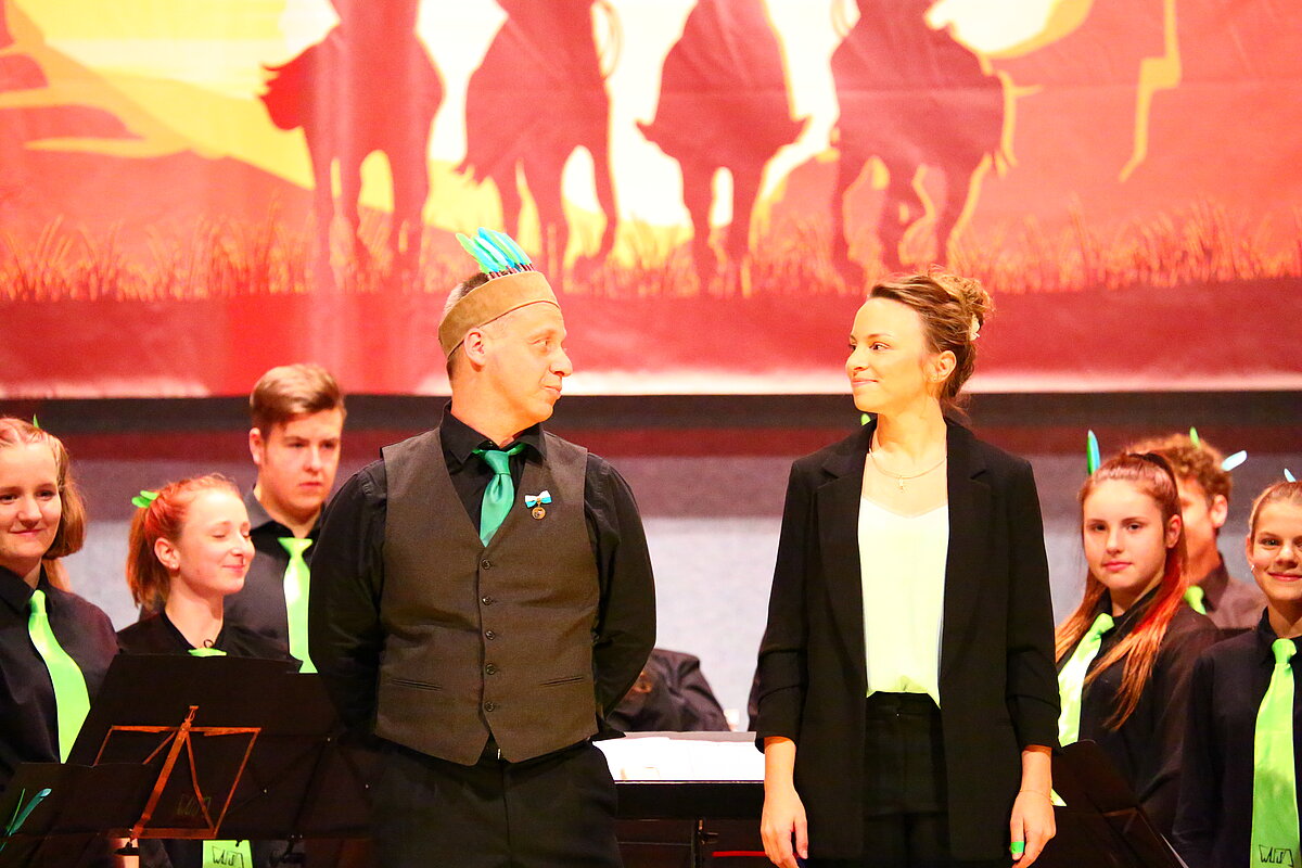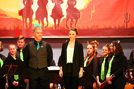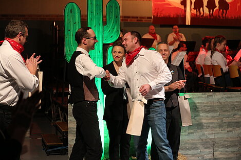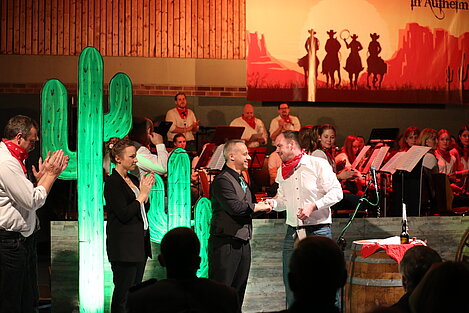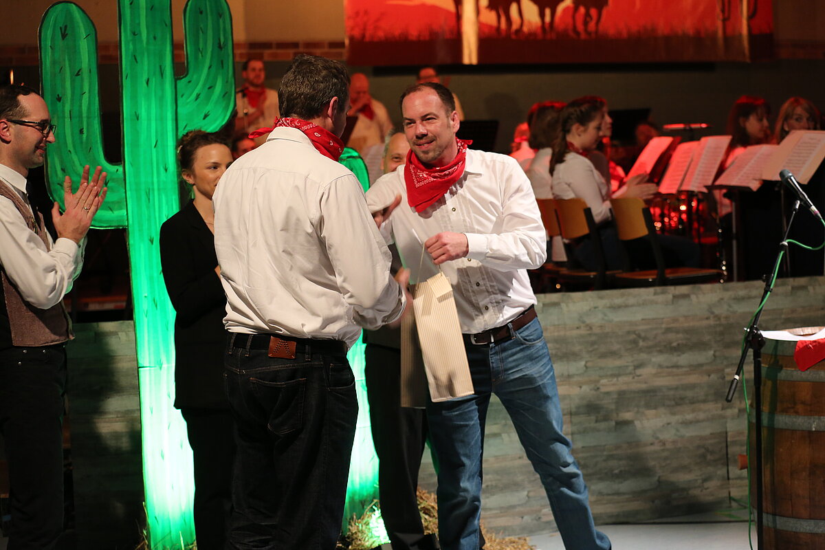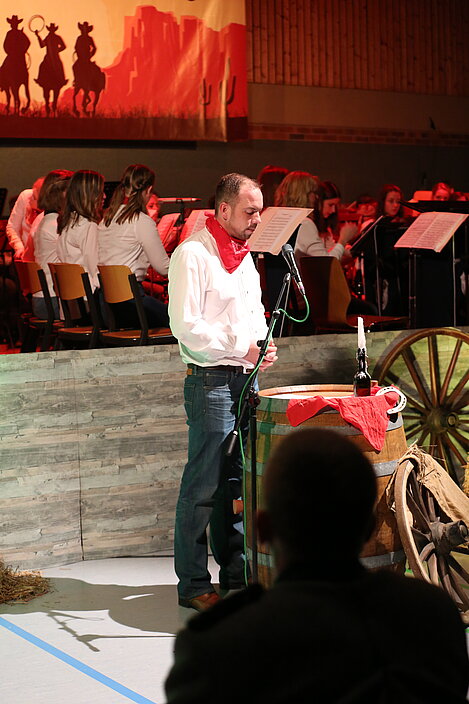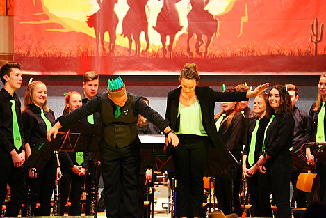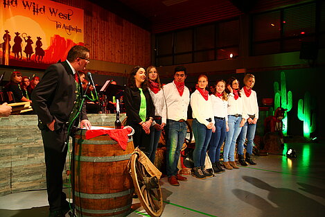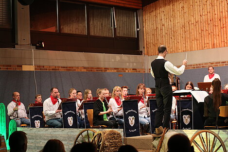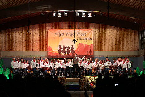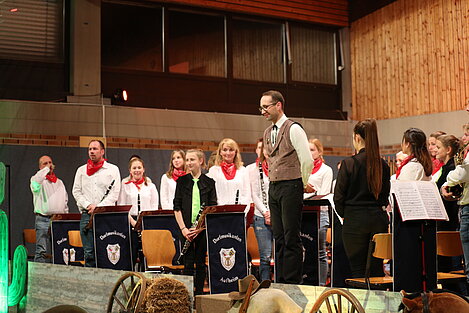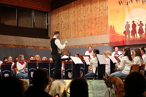Kakteen, Saloon-Schwingtüren, Stroh und Plüschpferde boten die Dorfmusikanten als Dekoration auf, um ihr Publikum schon optisch auf das Programm einzustimmen, das alle drei Orchester des Vereins gemeinsam gestalteten. Und keines tanzte aus der Reihe: Schon die Anfängergruppe hatte sich mit „Checkpoint“ und „Sun Calypso“ zwei westerntaugliche Stücke ausgesucht, die sie unter Leitung von Bernhard Ott souverän vortrug. Und auch die Romanze „Giudita“als Zugabe kam beim Publikum gut an.