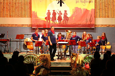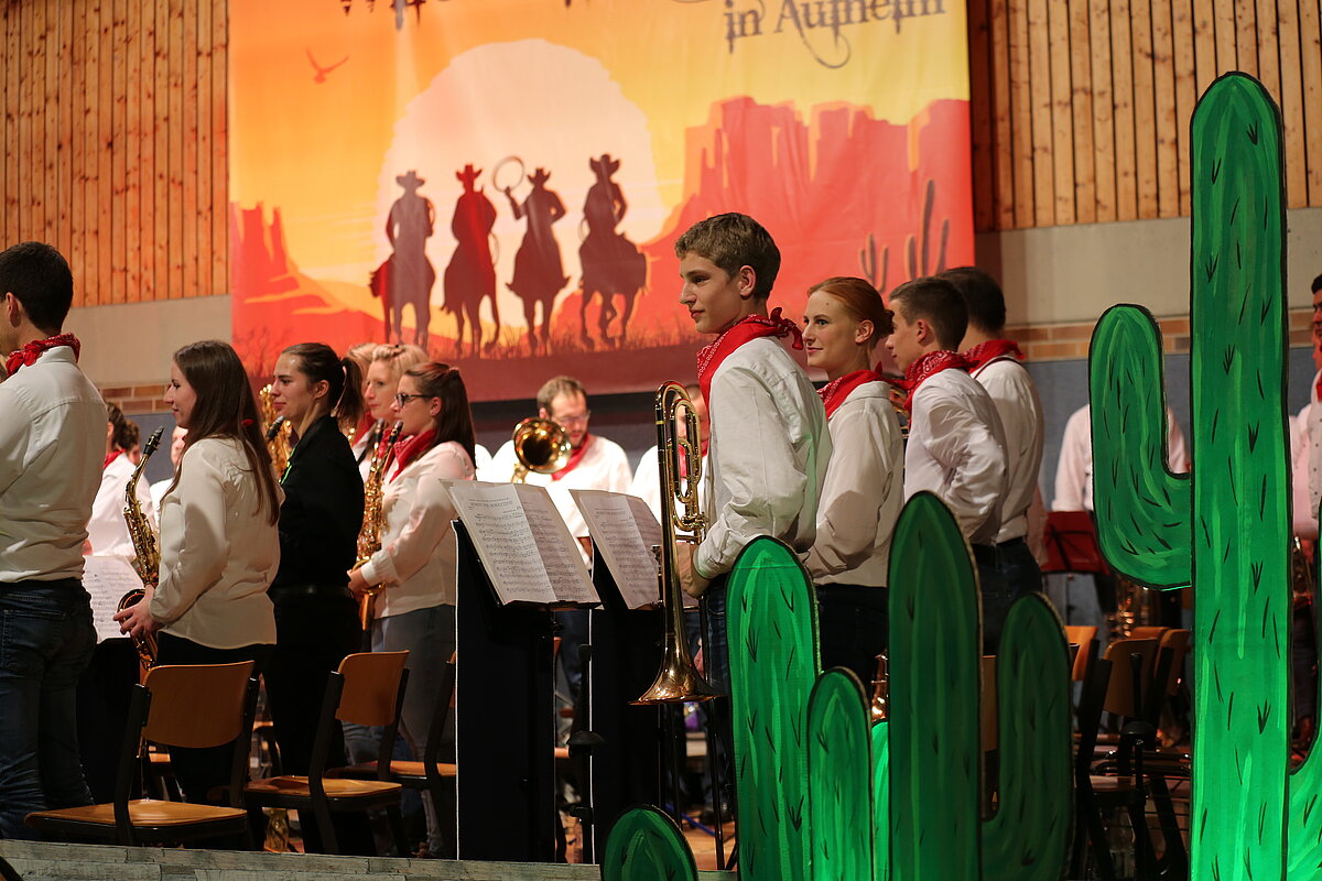 Alle drei Orchester der Dorfmusikanten Aufheim bieten beim Jahreskonzert ein Programm voller Reminiszenzen an Cowboys, Indianer und die weite Prärie.
