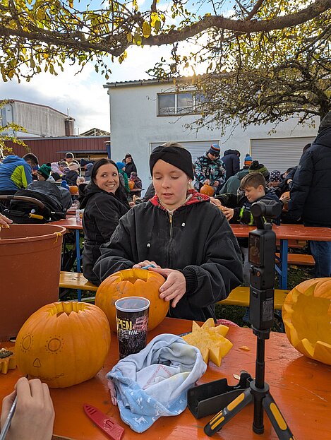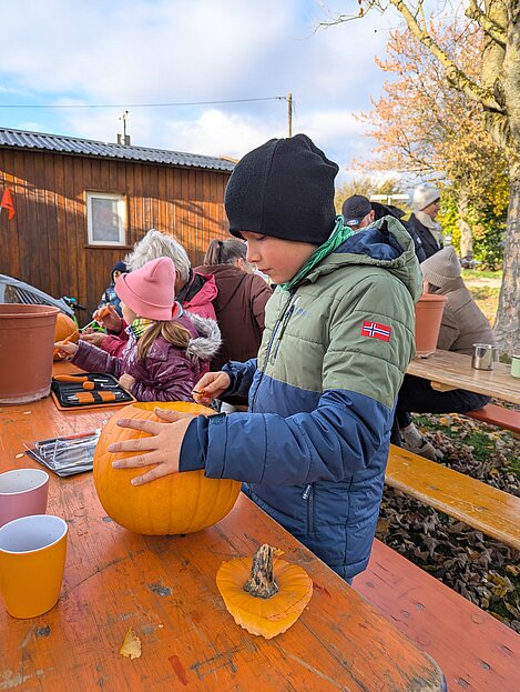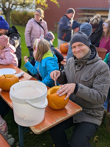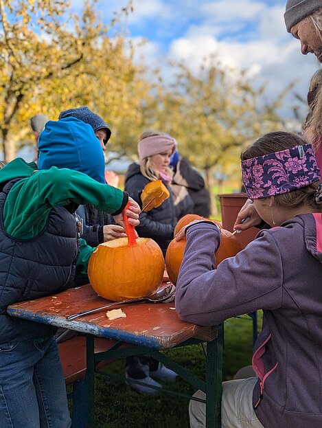 Am Sonntag, 26. Oktober 2025 fand im Musikergarten unser jährliches Kürbisschnitzen statt. Die Kinder hatten große Freude daran, gemeinsam mit den Erwachsenen kreative Figuren in die Kürbisse zu schnitzen. Es entstanden zahlreiche schöne und gruslige Gesichter – sogar Fledermäuse waren zu entdecken.