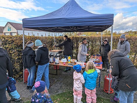 Neben dem kreativen Gestalten gab es wieder eine gemütliche Stärkung: Rote im Semmel, Kuchen, Lebkuchen, Kinderpunsch und Glühwein standen bereit und wurden von allen gern angenommen. Bei der angenehmen Atmosphäre entstanden viele schöne Gespräche und auch das Lachen kam nicht zu kurz.