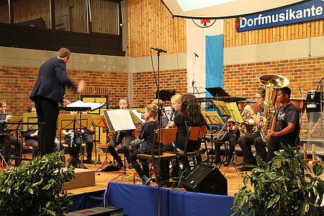 Mit Begeisterung eröffneten die Jüngsten unserer Anfängergruppe unter Leitung von Bernhard Ott das Konzert mit „Land Of Hope And Glory“, der inoffiziellen Hymne Englands aus dem Pomp and Circumstance March. Mit Bravour meisterten die Kinder auch das anschließende Medley „Negro Spirituals“ bevor mit der Zugabe „Fiesta“ gefeiert wurde.