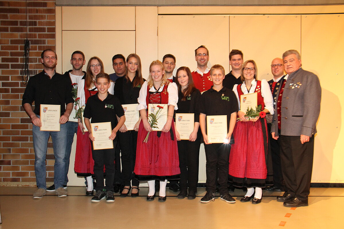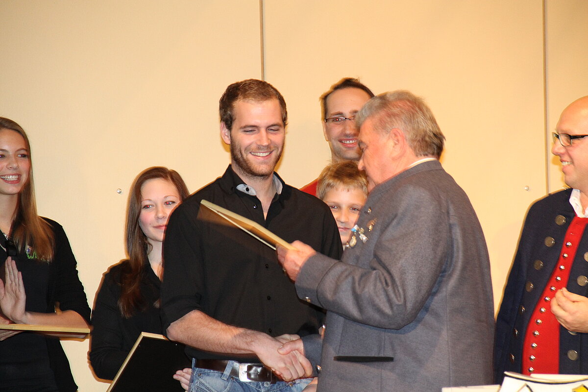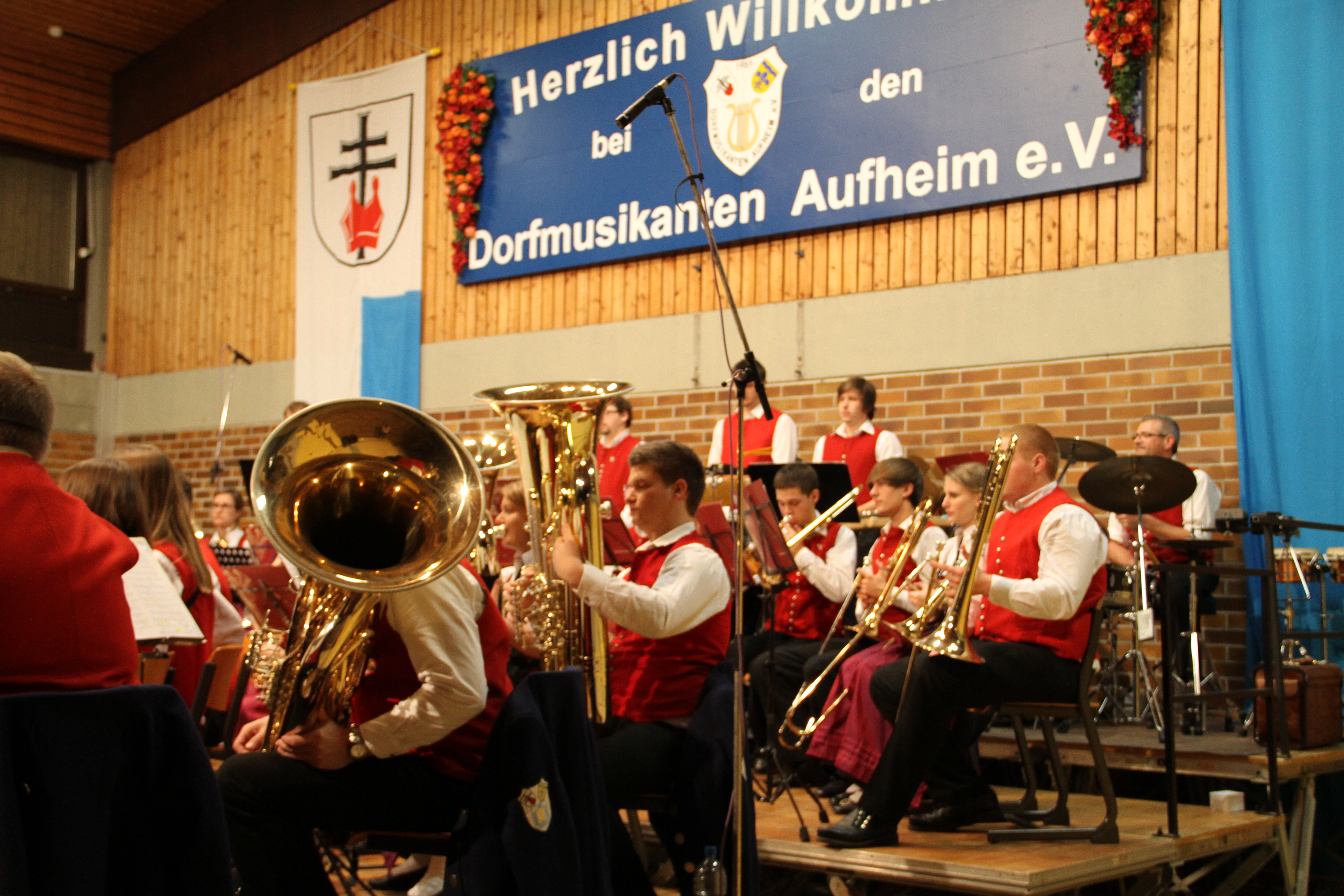 Bei den nachfolgenden Ehrungen konnte der Ehren-Bezirksvorsitzende Gerhard Snehotta zahlreichen Jugendlichen und Ensembles zu ihren Leistungen gratulieren. Und weiteren Musikern die Auszeichnungen für langjährige Mitgliedschaft überreichen. Er lobte die Arbeit der Dorfmusikanten und er erinnere sich gerne an das 2010 gefeierte schöne Bezirksmusikfest. Er fühle sich bei den Dorfmusikanten Aufheim wohl und komme immer gerne. Als Anerkennung für das hervorragende Abschneiden beim Oberstufenwettbewerb des Allgäu-Schwäbischen-Musikbundes als siebter Sieger überreichte er im Namen des Musikbezirks einen Fahrtkostenzuschuss. Er dankte Andreas Glatzmaier, dass er ohne Zögern die Dorfmusikanten als Projektdirigent zum Oberstufenwettbewerb und Konzert in einer schwierigen Situation erfolgreich geführt habe. Neben seiner Funktion als Bezirksdirigent und Dirigent der Musikkapelle Gerlenhofen.