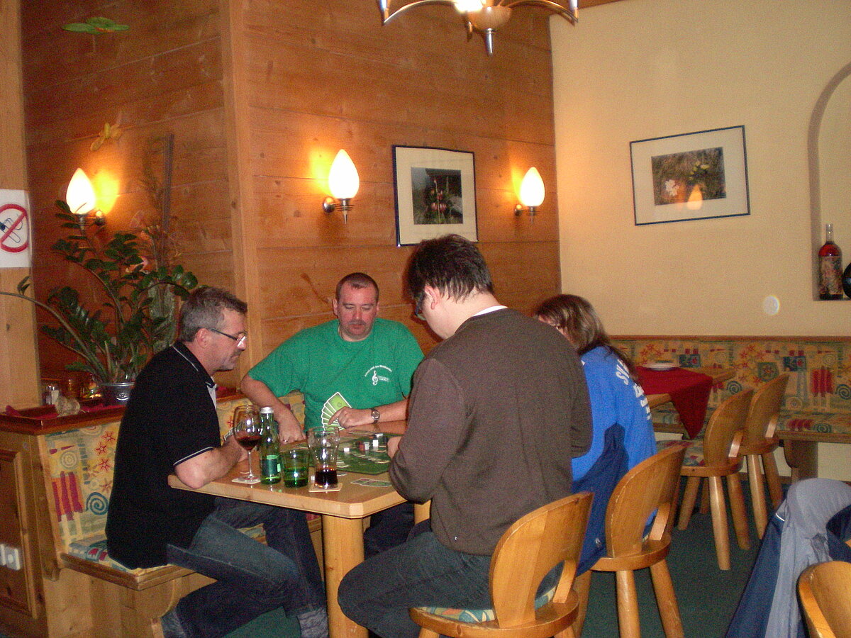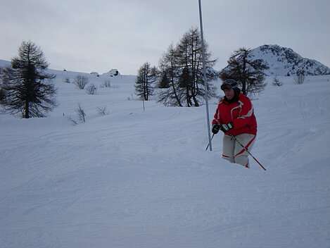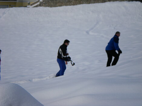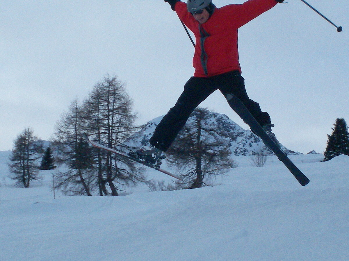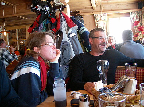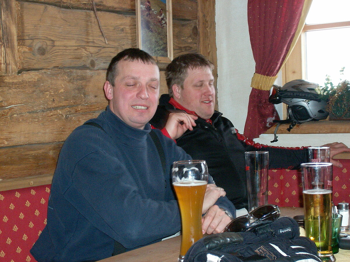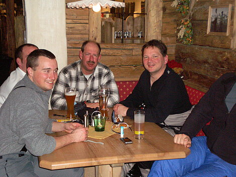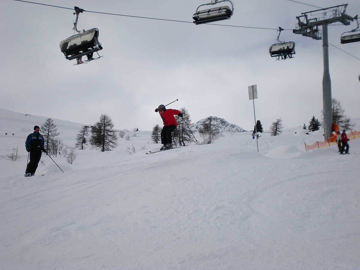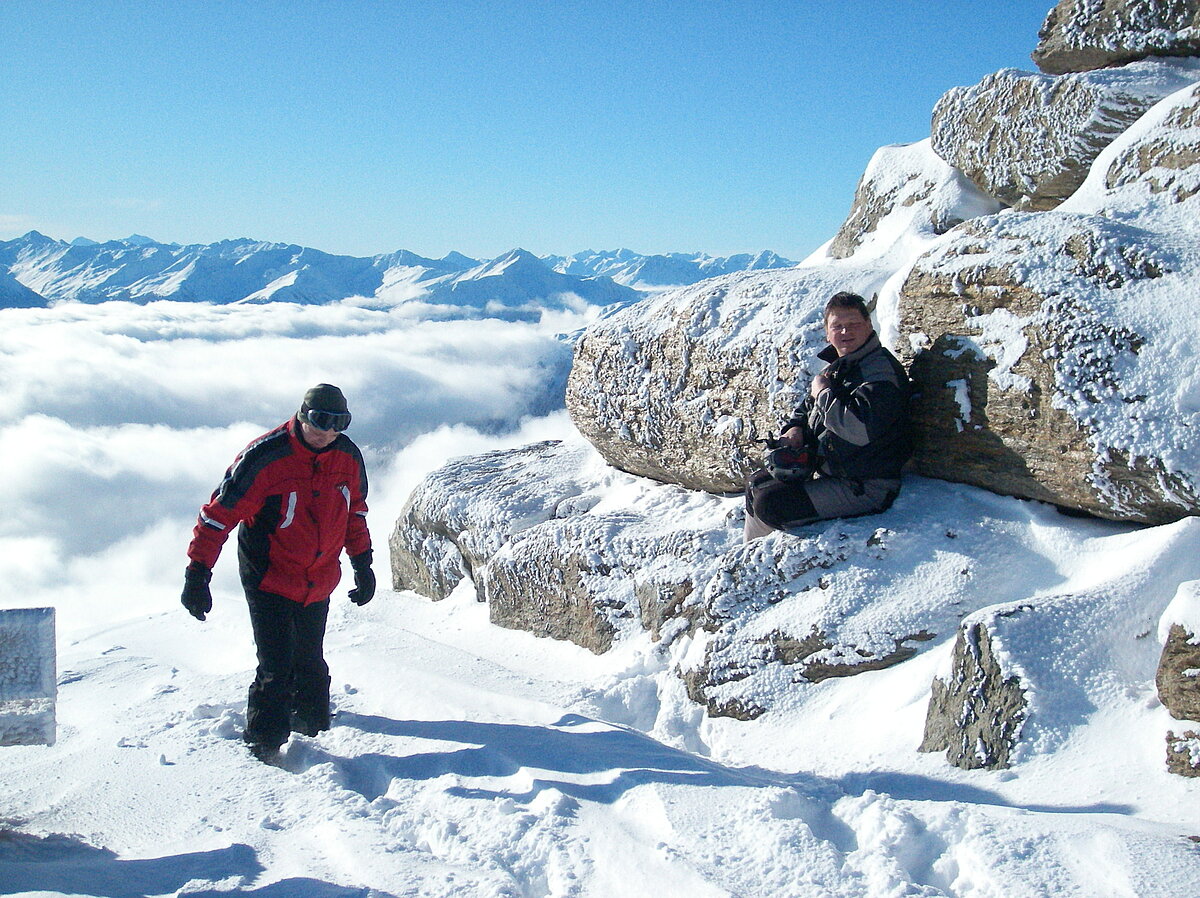 Stürmisch geht’s heut los. Und die Nordseiten der Hänge sind gesperrt. Einige hätten die Gondel bei soviel Bewegung eh nicht nehmen können. Zusammen mit Urlaubern aus ganz Europa drängen wir uns über die eingeengten Pisten. Gegen Nachmittag bekommen wir nochmals Zuwachs. Zwei Skifahrer und zwei Rodelfreunde – extra aus Aufheim nachgereist - schließen sich unserer Gruppe an. Wir sind erfreut. Abends gibt’s Live-Kino der besonderen Art. Welche anreisenden Gäste machen am schnellsten die Schneeketten an der Passstraße drauf?