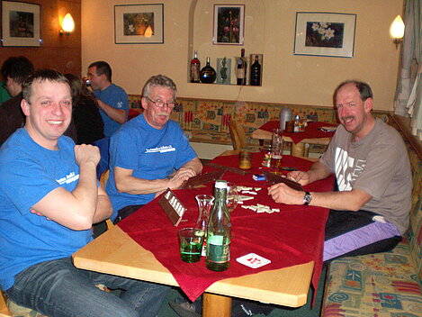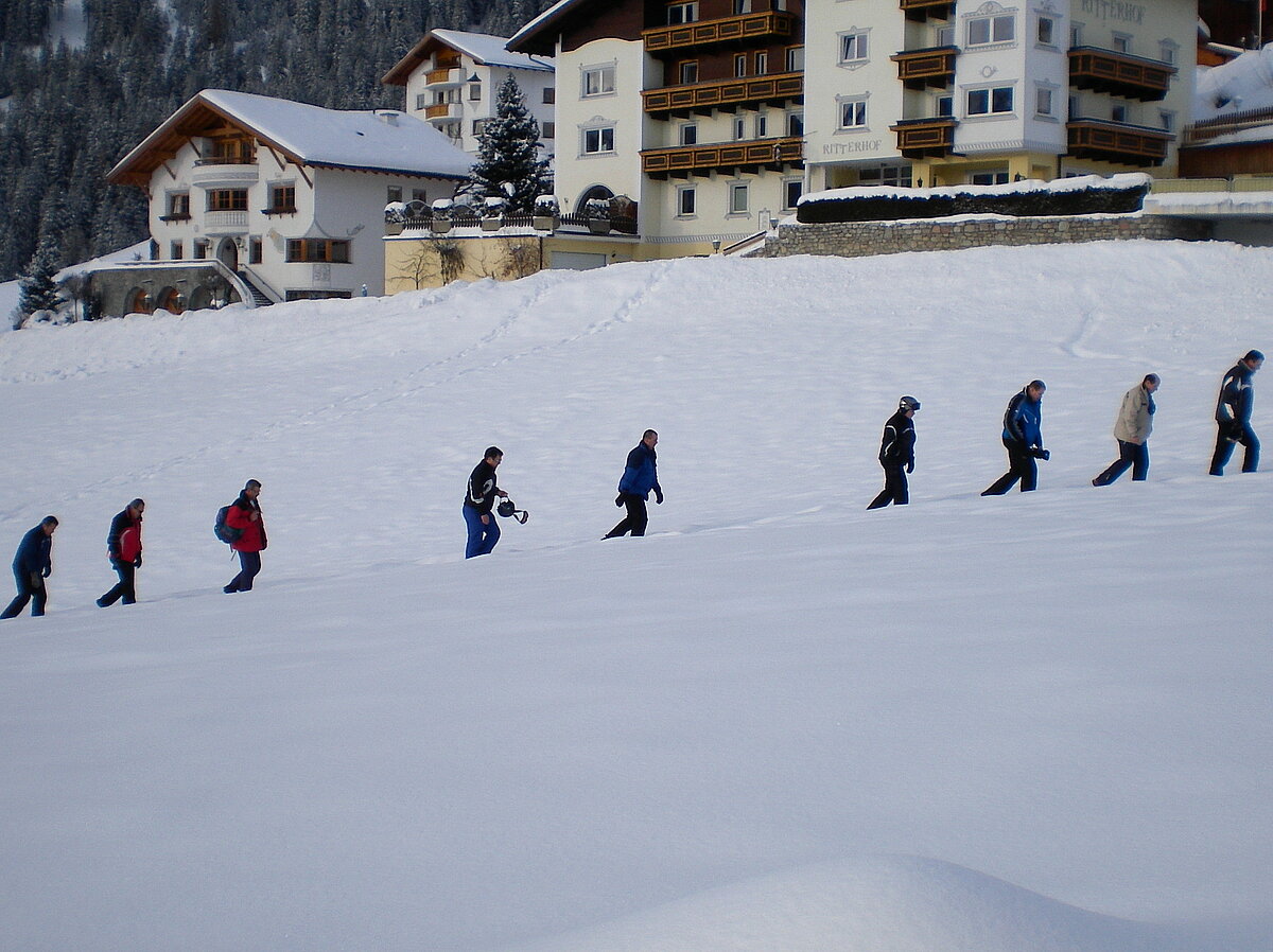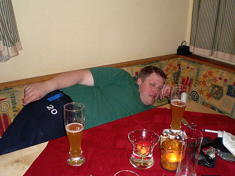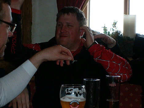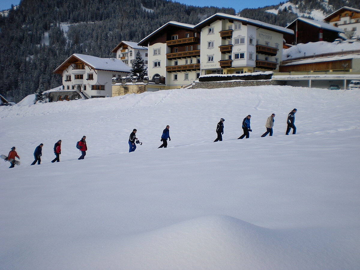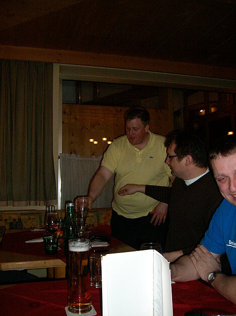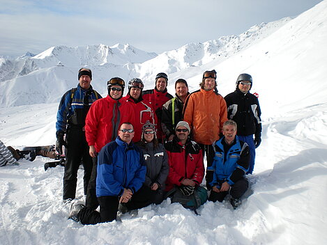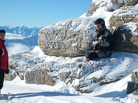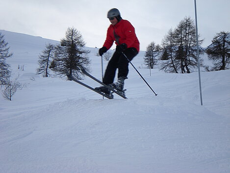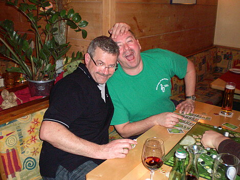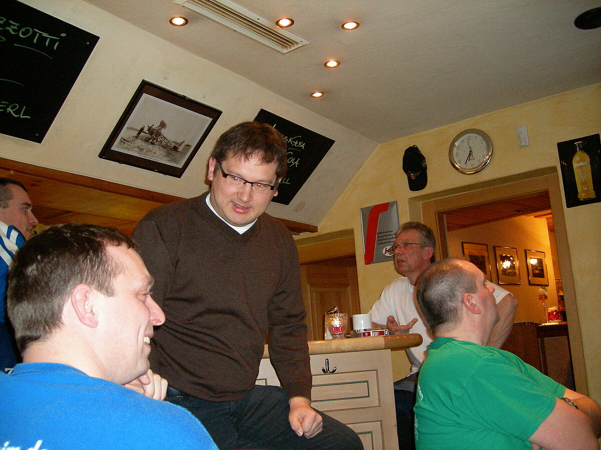 Stürmisch geht’s heut los. Und die Nordseiten der Hänge sind gesperrt. Einige hätten die Gondel bei soviel Bewegung eh nicht nehmen können. Zusammen mit Urlaubern aus ganz Europa drängen wir uns über die eingeengten Pisten. Gegen Nachmittag bekommen wir nochmals Zuwachs. Zwei Skifahrer und zwei Rodelfreunde – extra aus Aufheim nachgereist - schließen sich unserer Gruppe an. Wir sind erfreut. Abends gibt’s Live-Kino der besonderen Art. Welche anreisenden Gäste machen am schnellsten die Schneeketten an der Passstraße drauf?