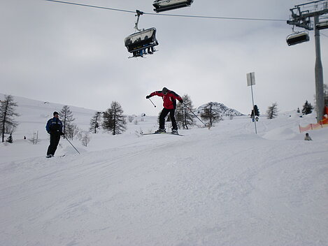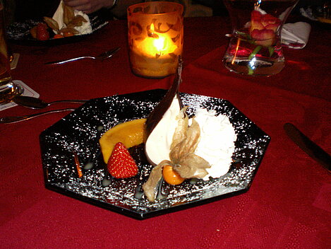 Wir haben Zuwachs bekommen. Drei weitere Skifahrer verlängern ihren Skiurlaub mit uns. Und sie haben schönes Wetter mitgebracht! Da machen die vielfältigen Hänge gleich doppelt so viel Spaß! Einige sehen den ganzen Tag über nur Schwarz(e Pisten). Aber auch diejenigen waren am Abend zum üppigen 5-Gänge-Menü müde und zufrieden.