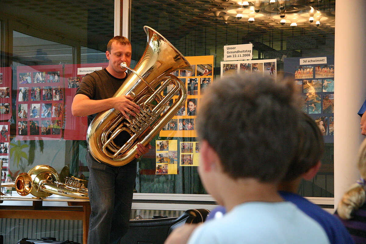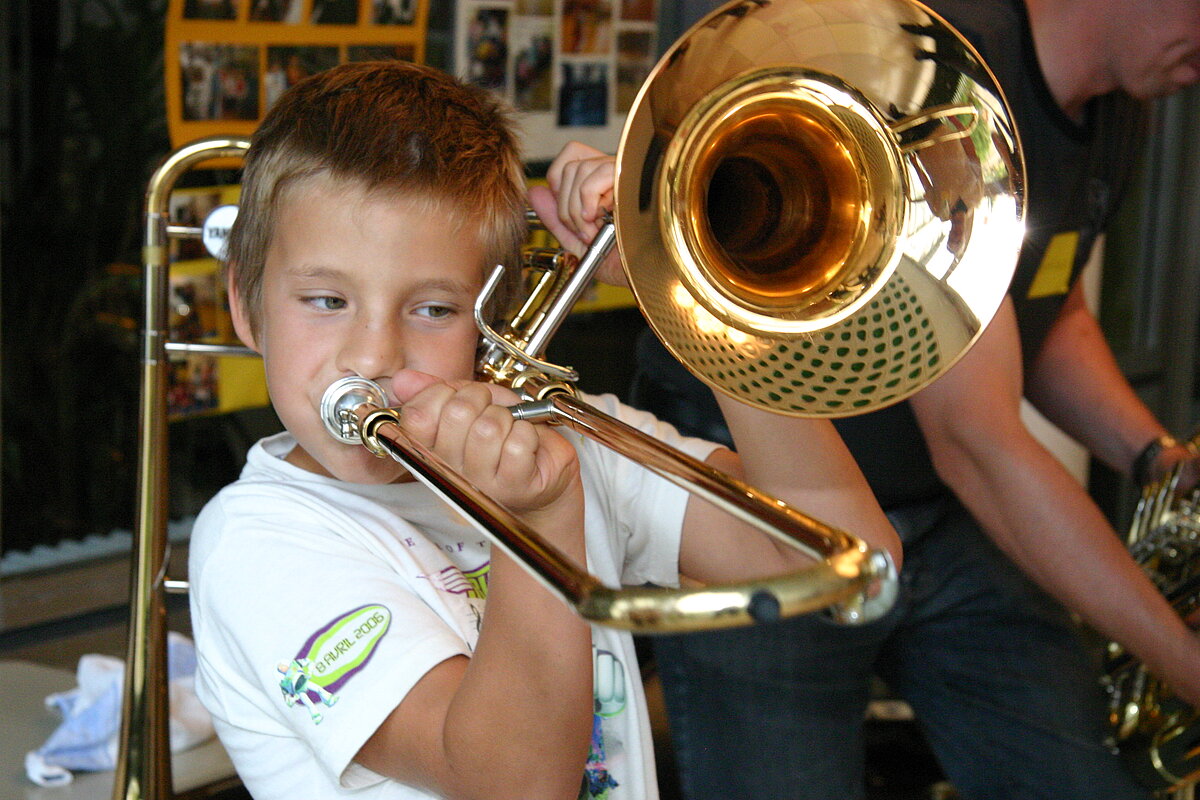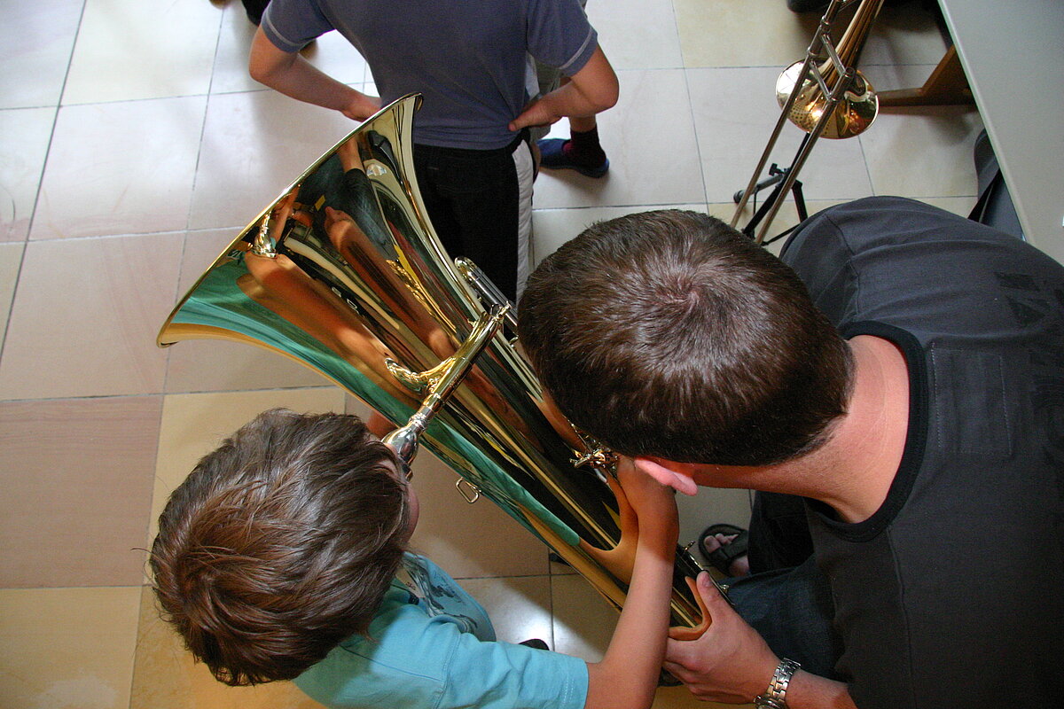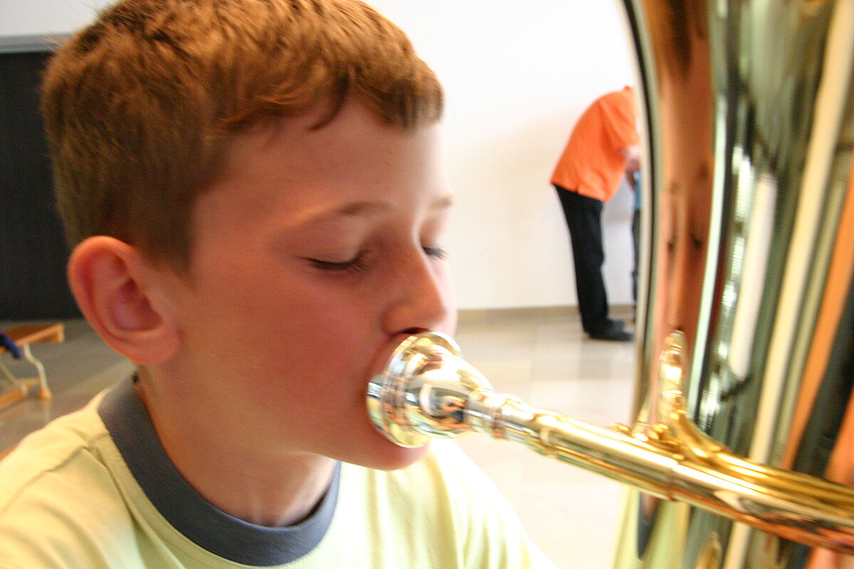 Wer mit den Eltern noch einmal ausprobieren wollte, kam am darauffolgenden Montagabend zur Jugendorchesterprobe. Hier konnte jeder nach Herzenslust ausprobieren und Fragen stellen.
