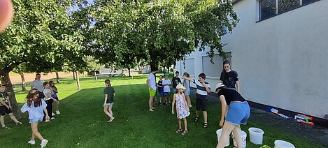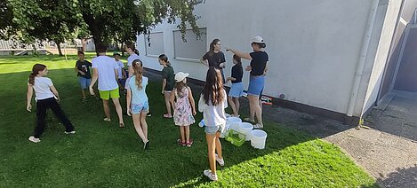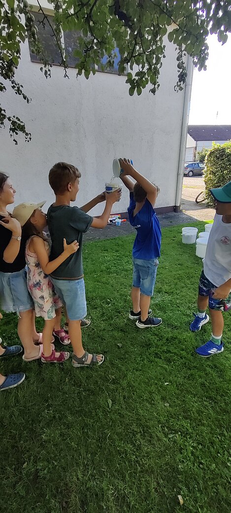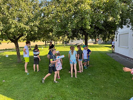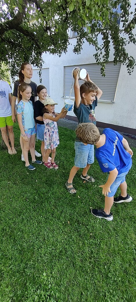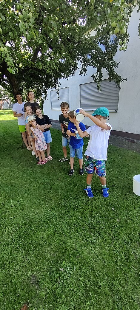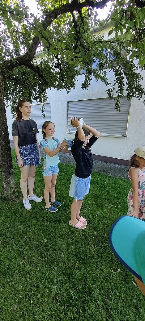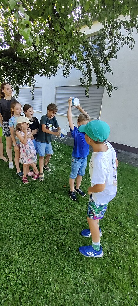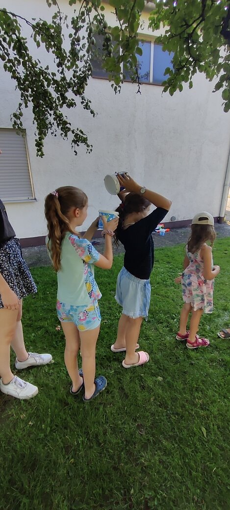 Bei einer Wasserschlacht konnten wir uns austoben und anschließend brachten verschiedene Spielstationen Abwechslung und viel Gelächter in den Garten. Beim gemeinsamen Spielen und Bewegen kam der Spaß nicht zu kurz.