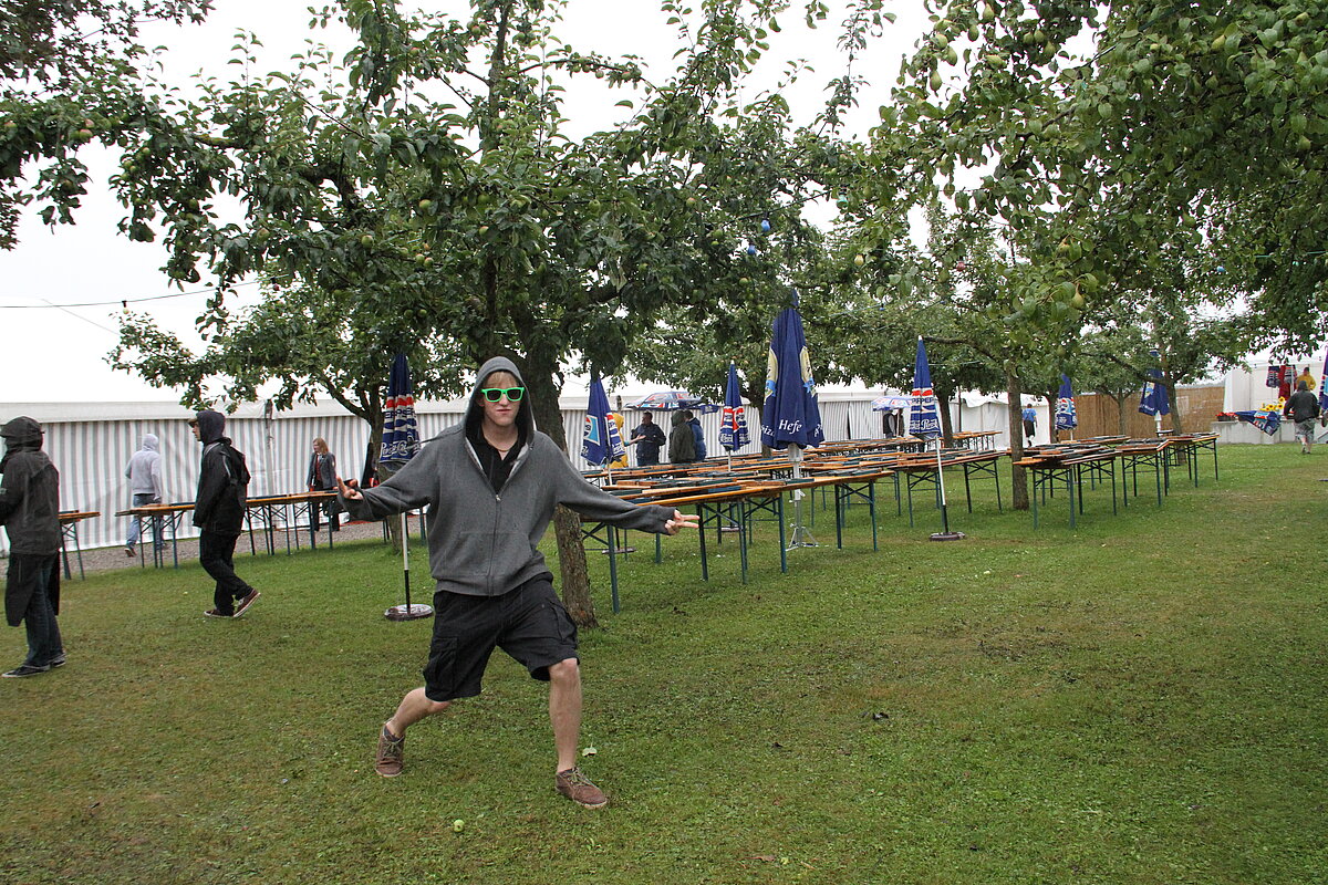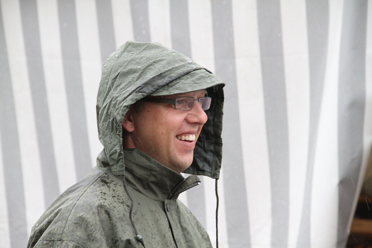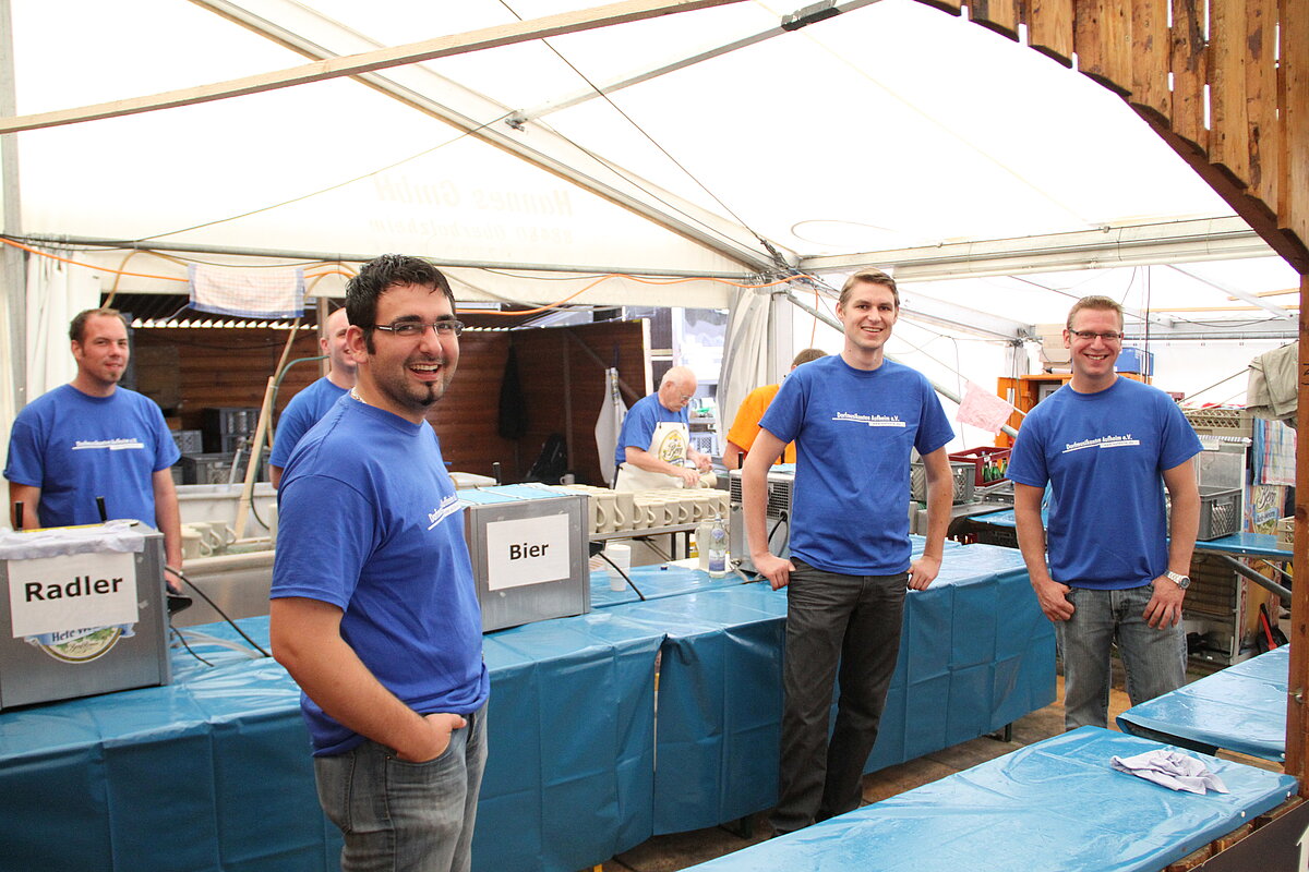 Hubert Pömmer, der Schöpfer und Künstler unseres Maskottchens, dem lebensgroßen Holztubisten "Lothar", war aus Österreich ebenfalls nach Aufheim gekommen und überreichte ein besonderes Jubiläumsgeschenk. Das geschnitzte Jubiläums-Holzwappen mit goldener 50 werden wir spätestens beim Trachten- und Schützenumzug beim Oktoberfest München im Herbst präsentieren. Immer noch bei Dauerregen spielte die Sommertourband Vöhringen zum Festausklang auf. Gegen 21.30 Uhr war die einmalige und unvergessliche Geburtstagsfeier unseres Vereins vorbei.